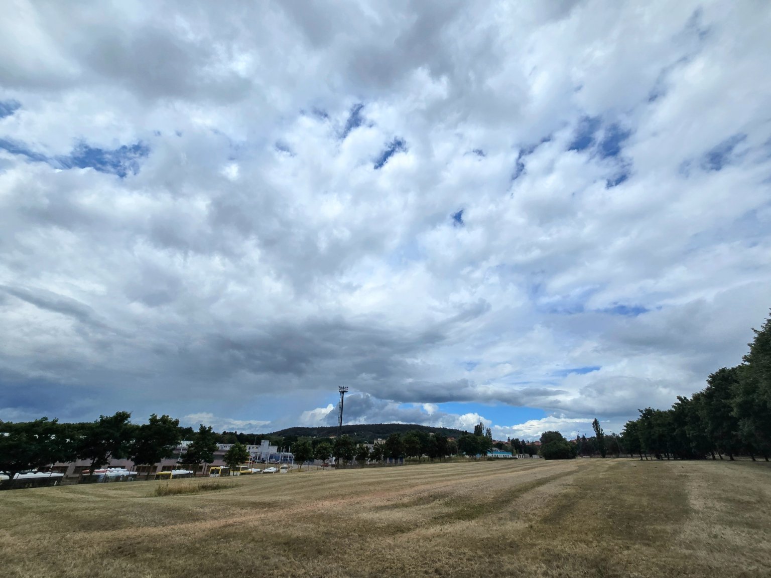 Déšť v různé intenzitě, občas je silný, občas mírný. Fouká vánek.