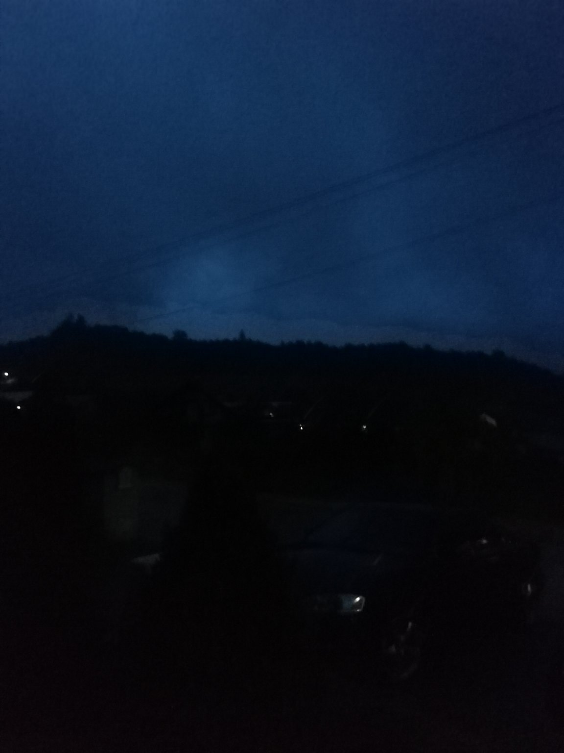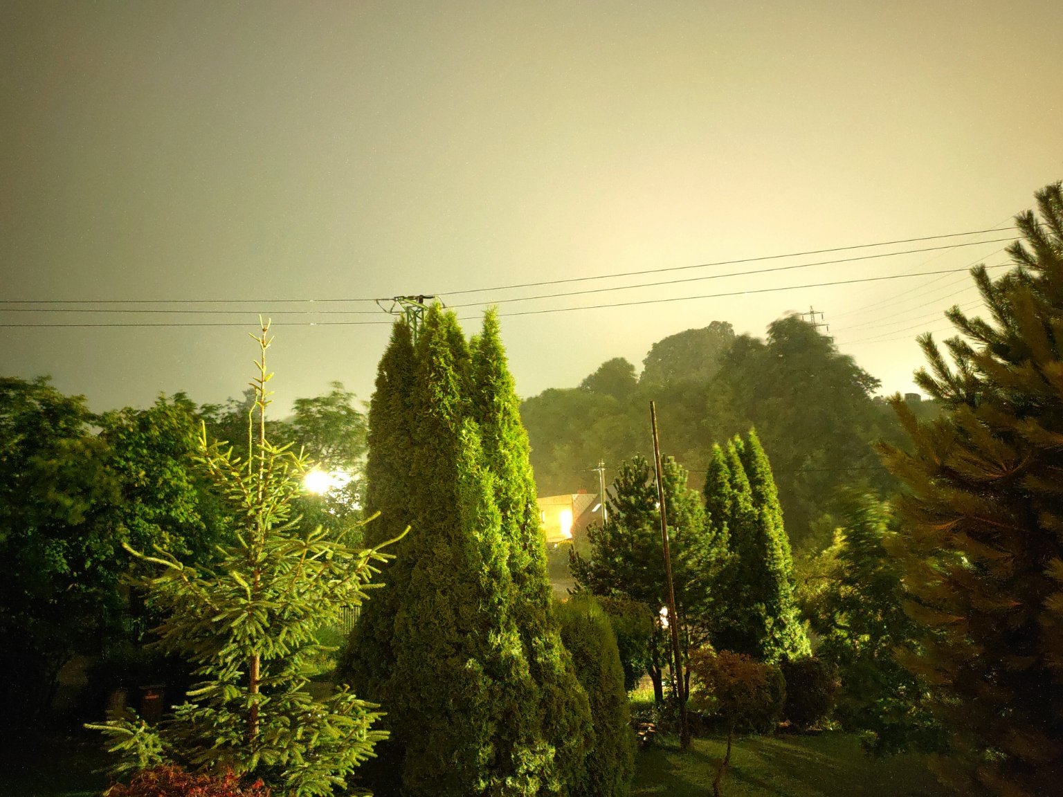 Hřmí blízce, jinak vydatný déšť. Mírný nebo čerstvý studený vítr