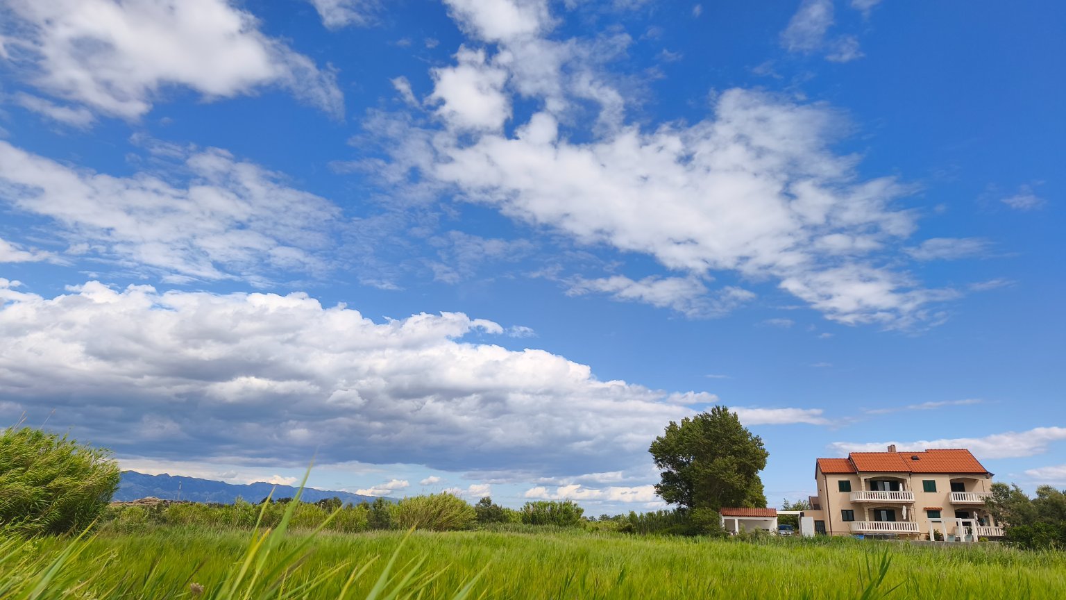Polojasno, je hezky a ani ne moc teplo takže super počasí na procházku. Na obloze kupy.