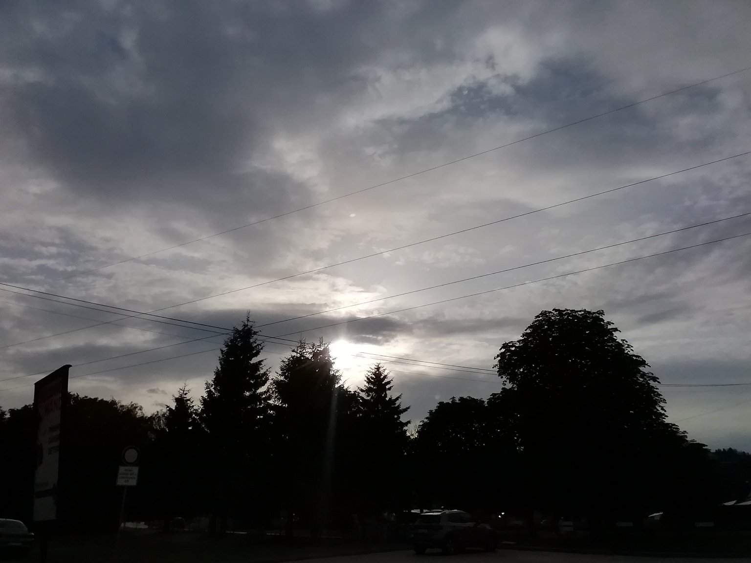 Zataženo, žene se na nás dešťová přeháňka. Už začíná kapat a rozfoukal se čerstvý, přechodně i silnější nárazový vítr.