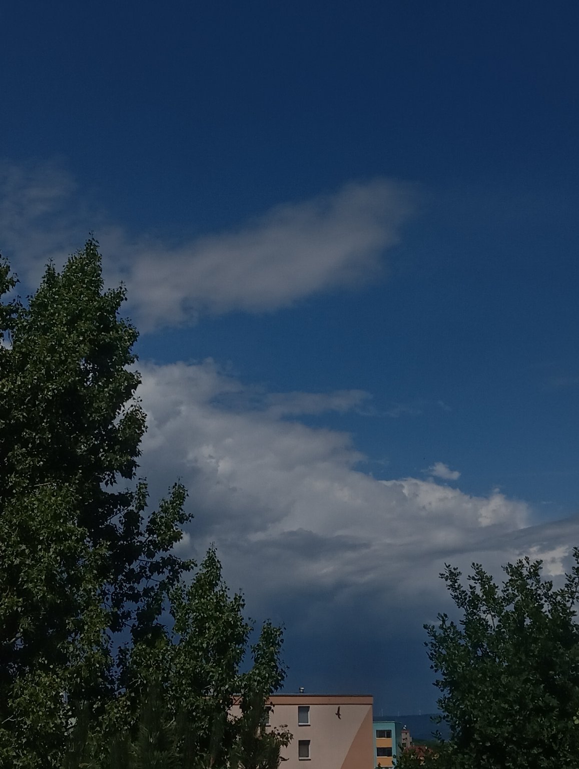 18,5°C, Zataženo až oblačno. Bouřka se dávno rozpadla, ale v okolí teď začaly nabíhat přehaňky a celkem dost fuči..