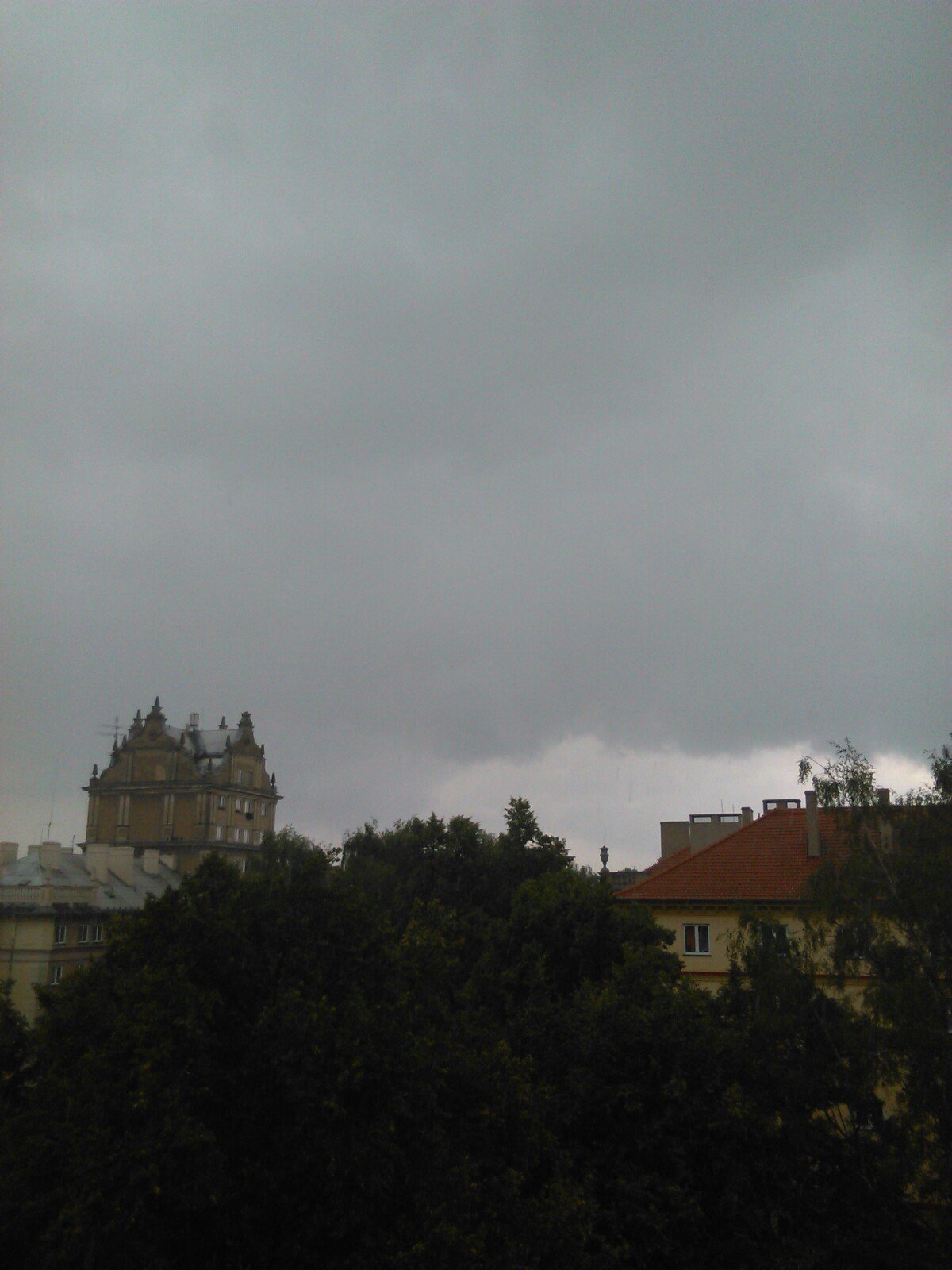 7/8, blížící se bouřka, vítr 1,0 m/s (náraz 2,4 m/s) od východu, tlak 1005,9 hPa, vlhkost 47%.