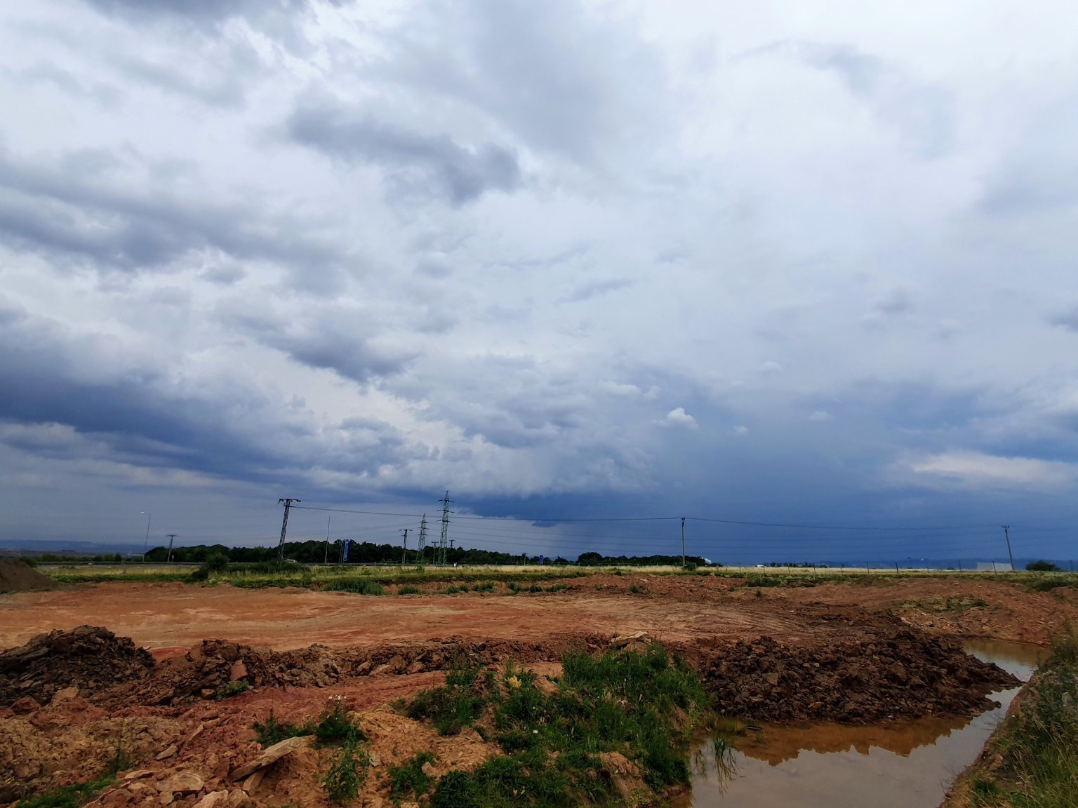 Na hřebeni Jeseníků panuje velmi nepříznivé počasí, intenzivně prší a padají kroupy. Na snímku je profesionální stanice ČHMÚ, Šerák.