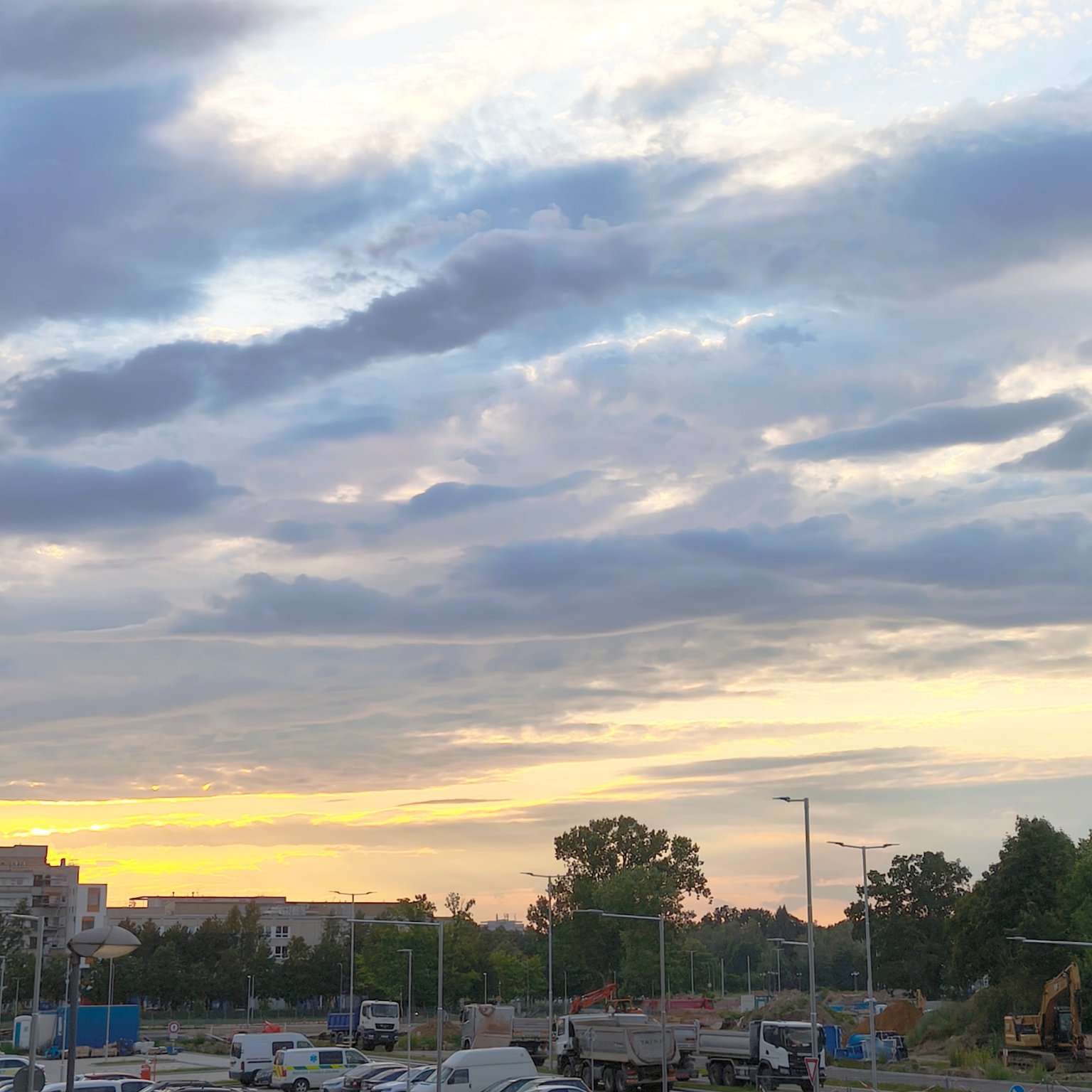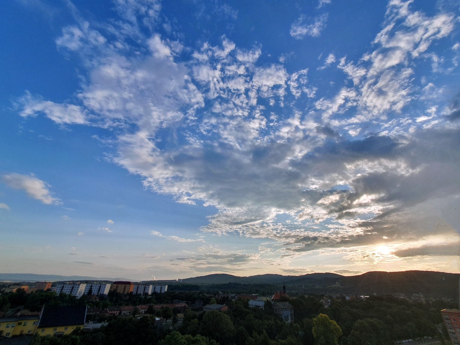 Aktuální těsný přechod silné bouřky od jihu, s krásně nasvícenou oblačností a vzdáleným hřměním