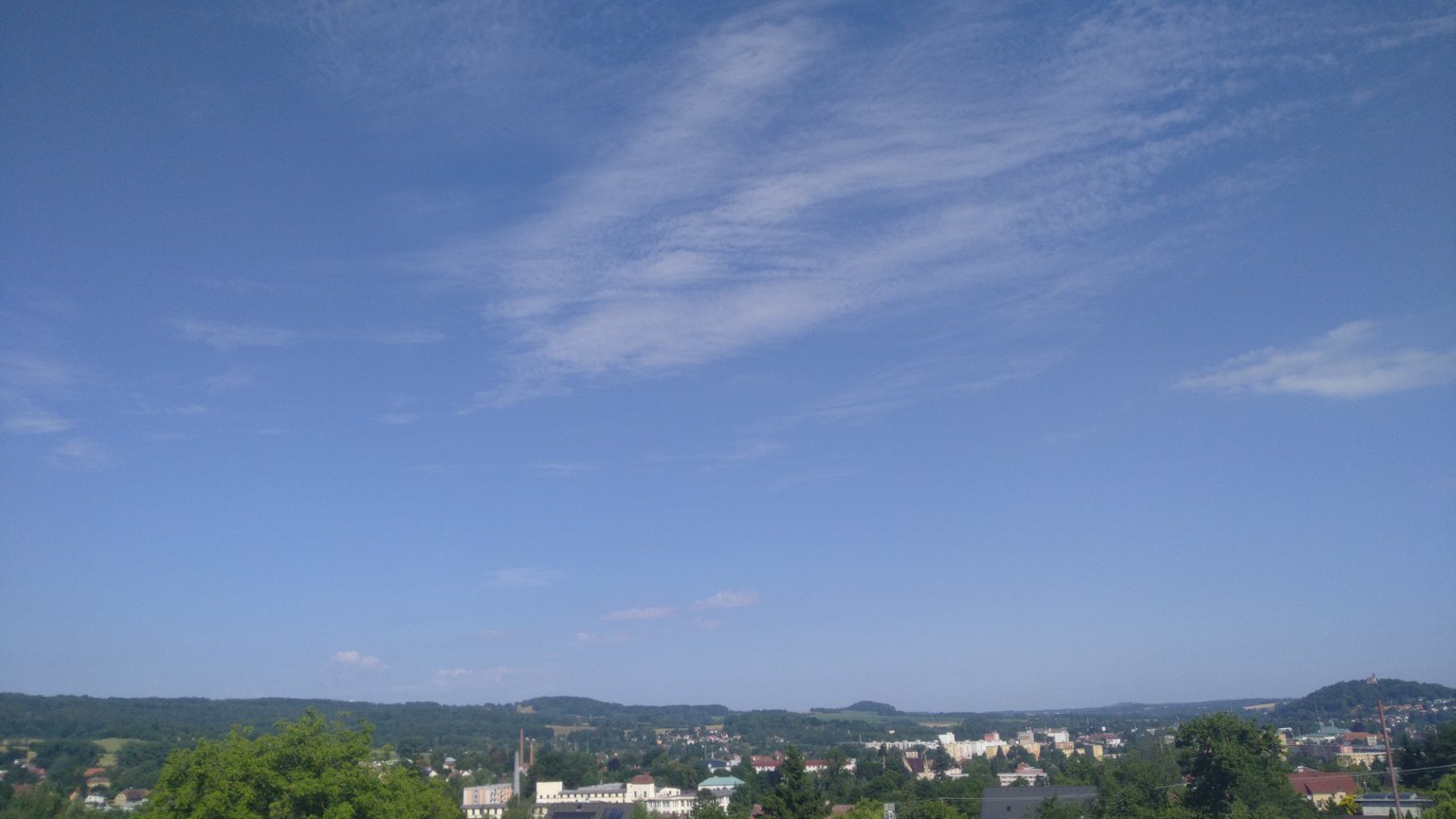 Většinou polojasno až skoro jasno, jižně od nás opět zasahovaly bouřky. Pocitově je dost teplo.