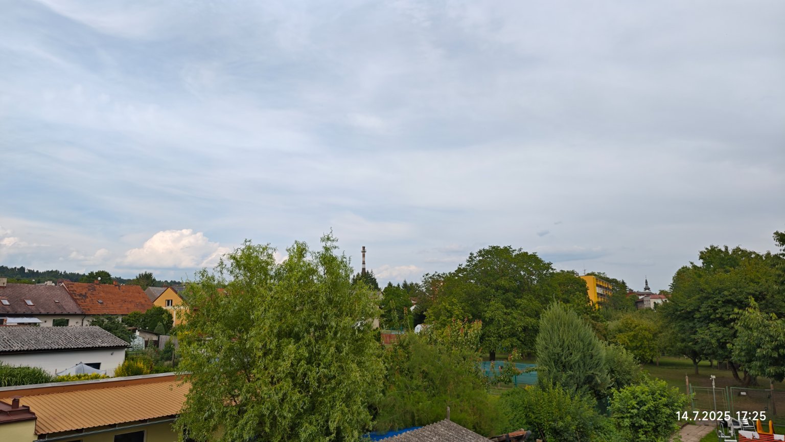Převážně oblačno, severně od nás řádí další bouřky. Jde vidět i černá oblačnost.