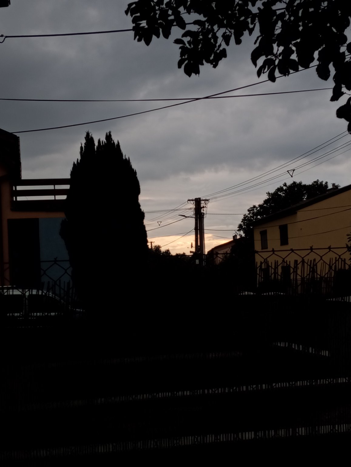 Slabá přeháňka a z jihu a ze severu hřmí. Slabý vítr