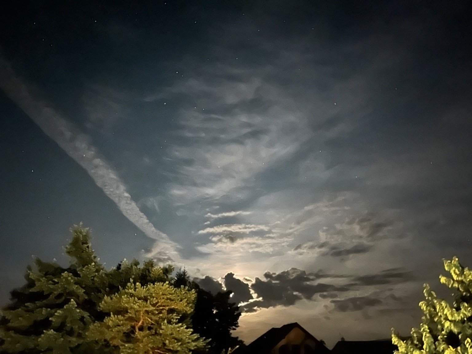 Bouřky se chtěly regenerovat ale nevyšlo, zahřmělo. Vítr byl čerstvý s nárazy 60 km/h, teď pominul do bezvětří.