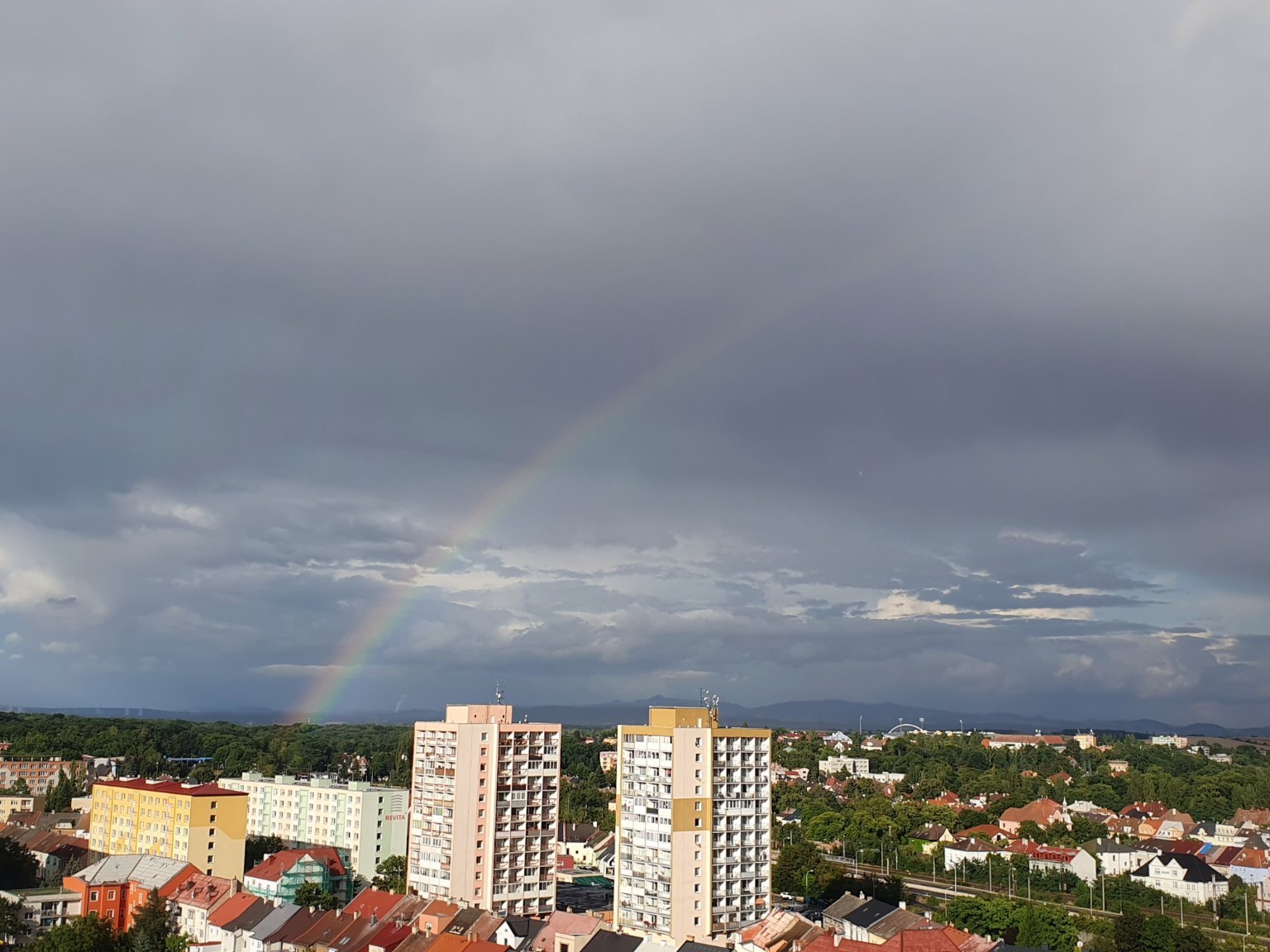 Slabý déšť, foto duhy č. 1 - slabá, při mrholení.