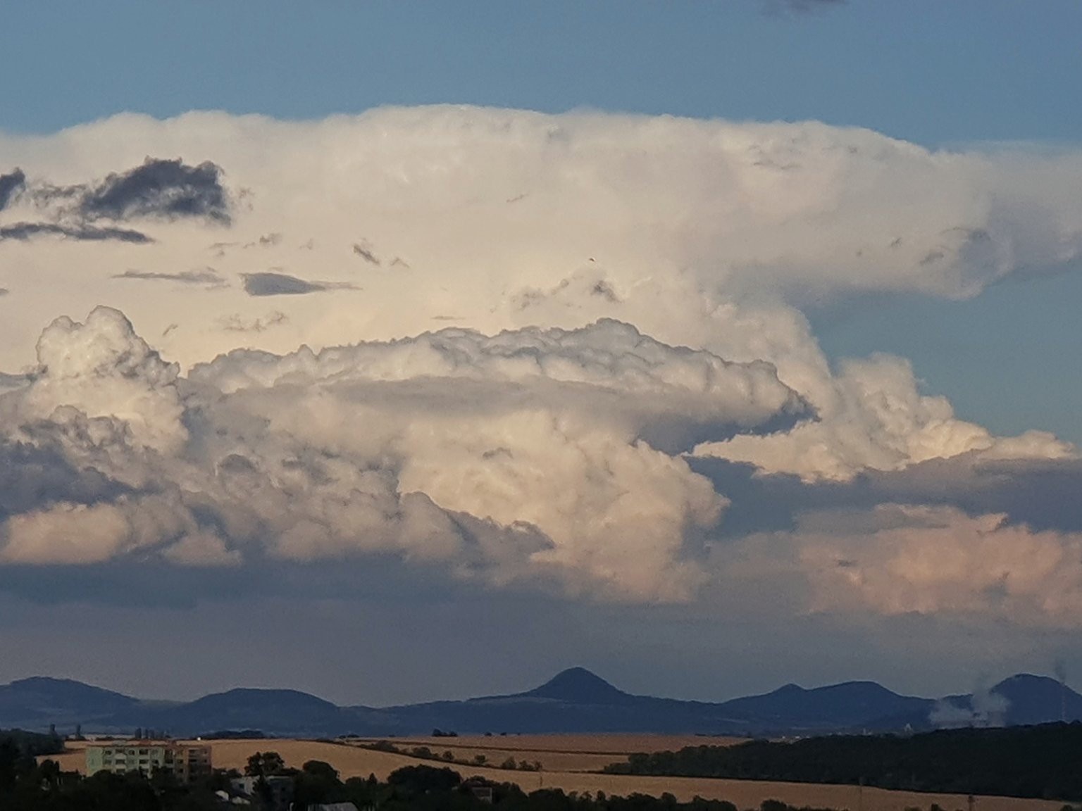 Vysoká oblačnost od bouřek a mammaty. Převážně bezvětří