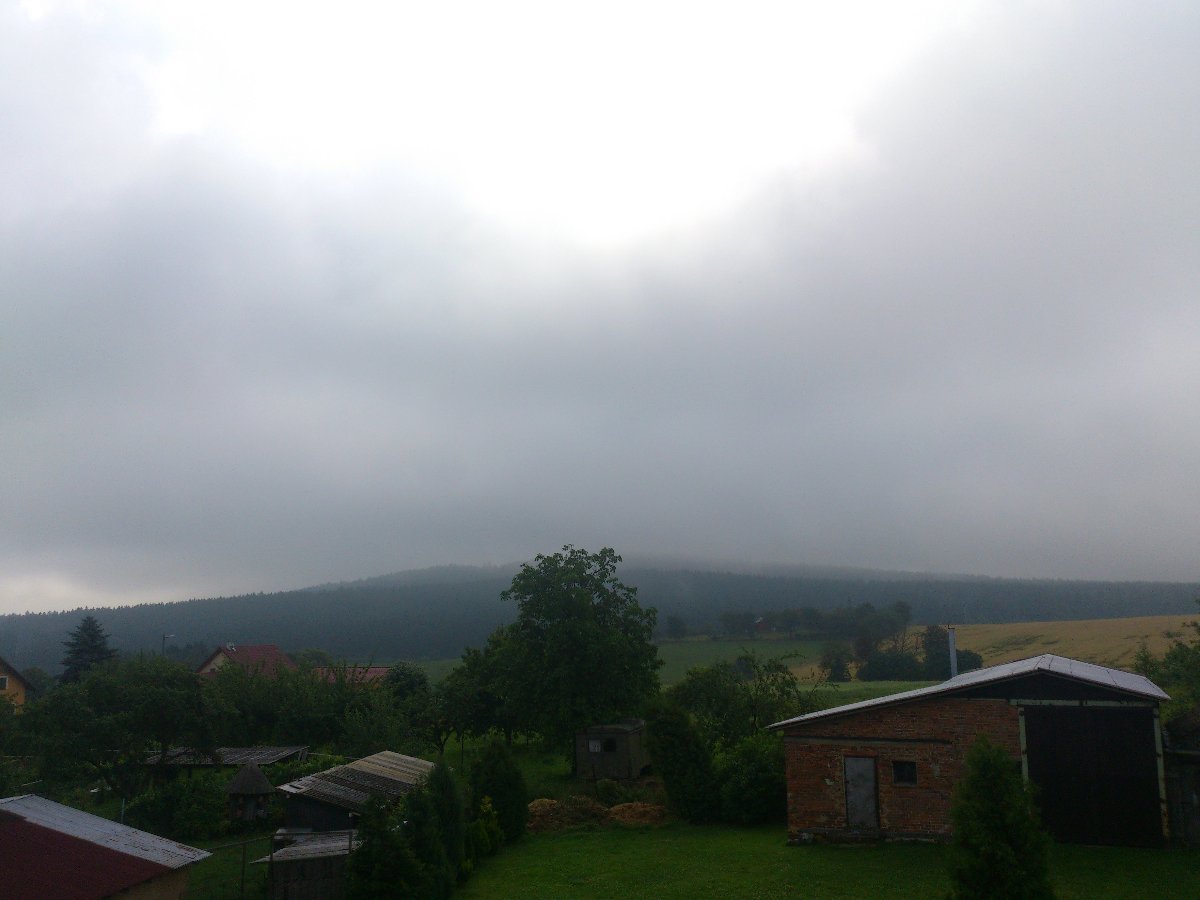 Oblačno až polojasno, JZ vítr v nárazech 25 km/h, tlak 1010,2 hPa a vlhkost 64 %.
