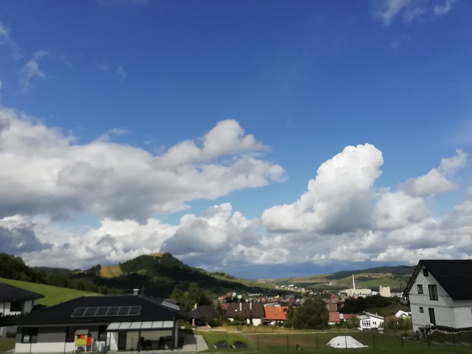 Blíží se přeháňka, slabý Z. vítr, tlak 1013 hPa, vlhkost 58%.