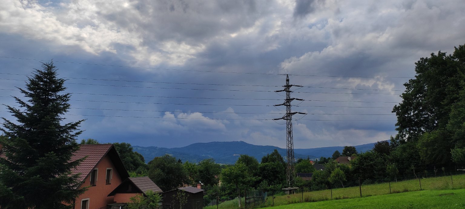 Byl přívalový déšť ale už bez bouřky, teď prší normálně. Slabý vítr