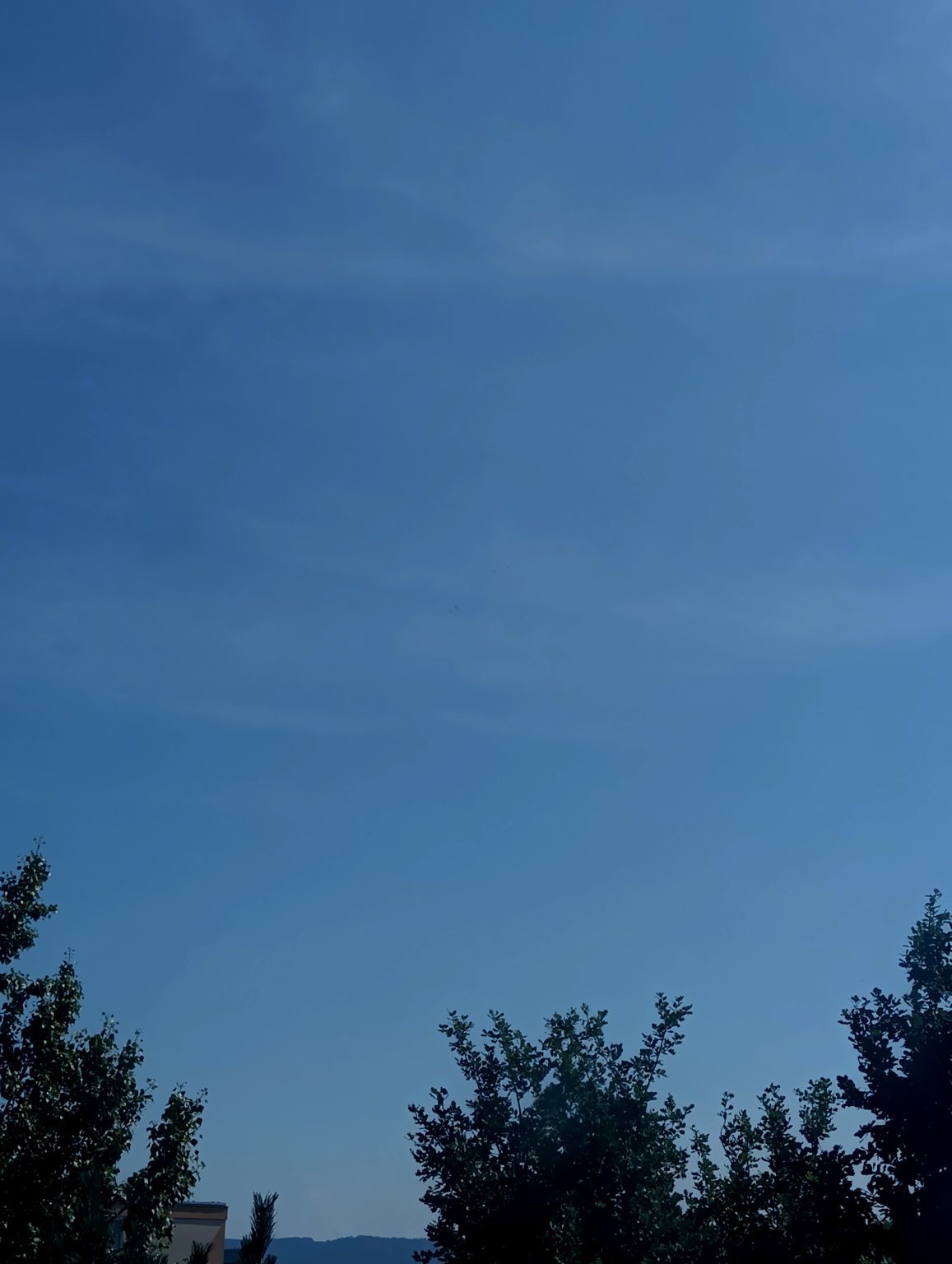 Je slunečno a většinou bezvětří s letními teplotami, jen trocha vyšší oblačnosti od Z. Vlhkost jen 34 % a výborná dohlednost, ranní min. 10,5°C. Je nádherně, zítra odpoledne dorazí na většinu území i výraznější srážky