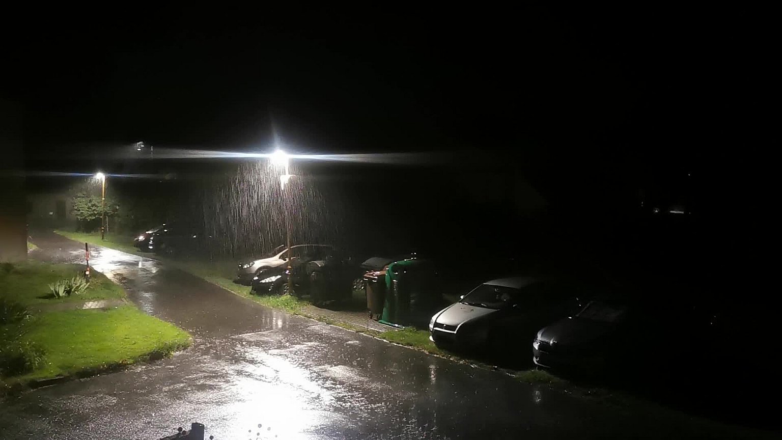 19,9°C, Vzdálená bouřka. Už se ochlazuje a blíží se další bouřka.