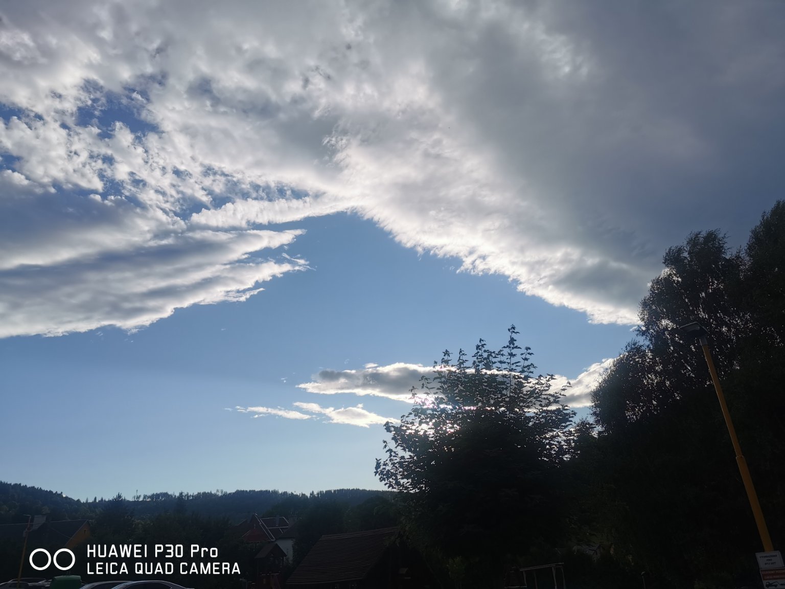 Již jen malá oblačnost, ale stále větrno. Dnes pár 💧a rozpad, Severně ještě kovadliny s mammaty. Ráno bude kosa