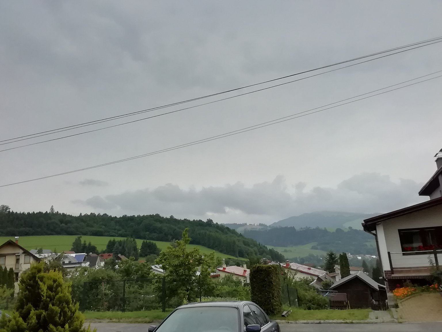 Zataženo. Slabý vítr (tlačí se tu déšť od bouřek na Slovensku, vypadá že bouřit z toho spíše nebude ale aspoň déšť jo)