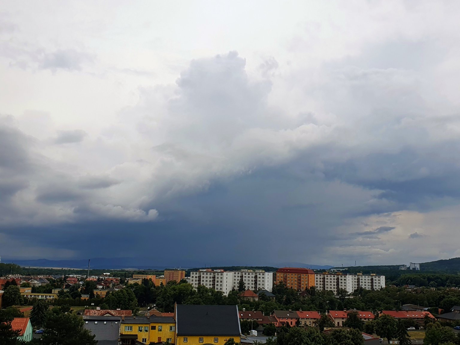 19,1°C, Slabé mrholení. Každou chvíli přestane pršet, napršelo krásných 10,7 mm srážek, začíná se tvořit přízemní opar a z lesů se paří už přímo mraky.