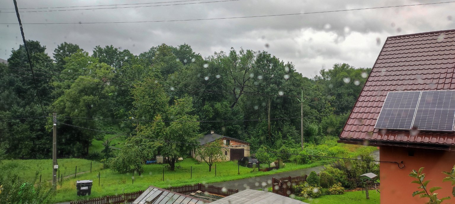 Větsinou oblačno, za noc ještě napršelo 0,5 mm, takže celkový úhrn za včerejšek je 1,8 mm. To je celkem málo, ale snad naprší jindy. Oblačnost se protrhává.