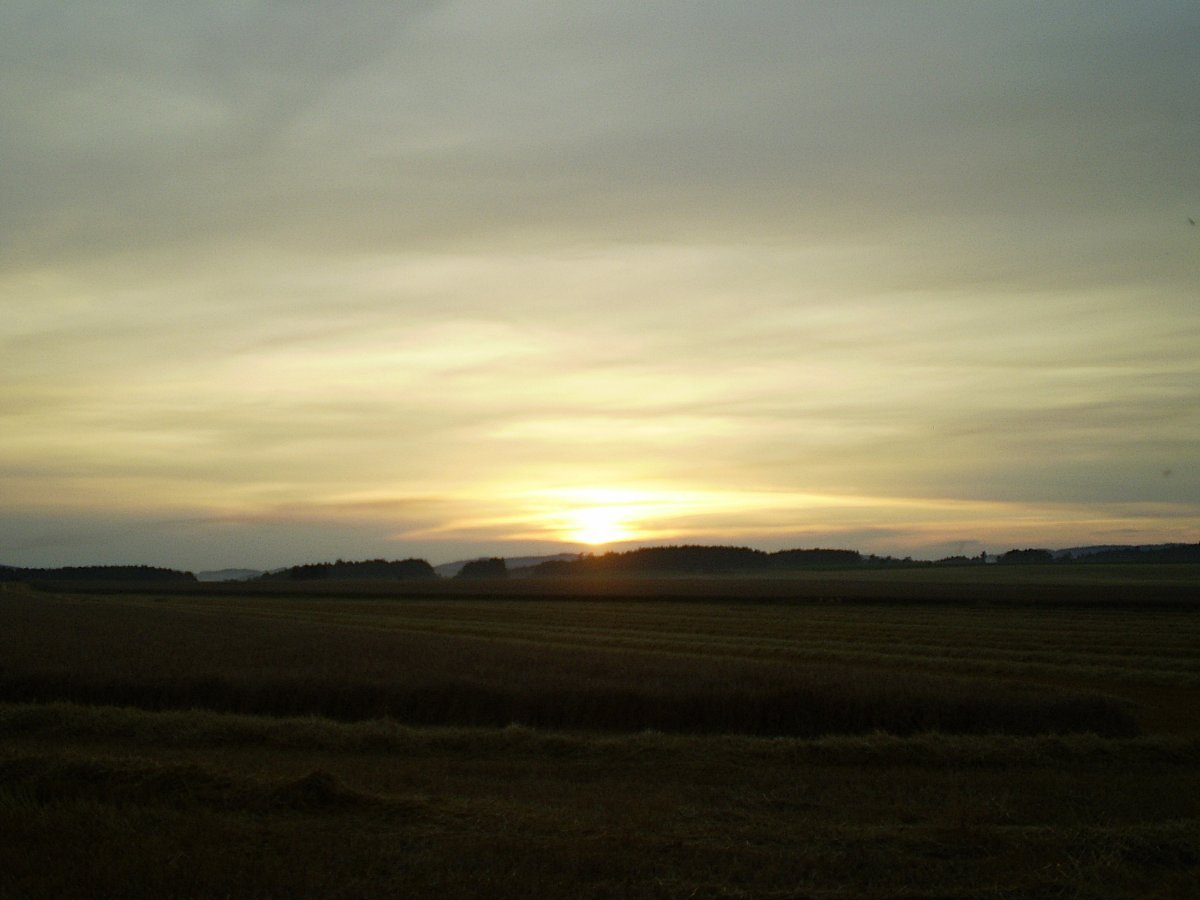 Velmi příjemný večer. Bezvětří, úplněk se schovává za mraky, ale západ slunce je krásný.