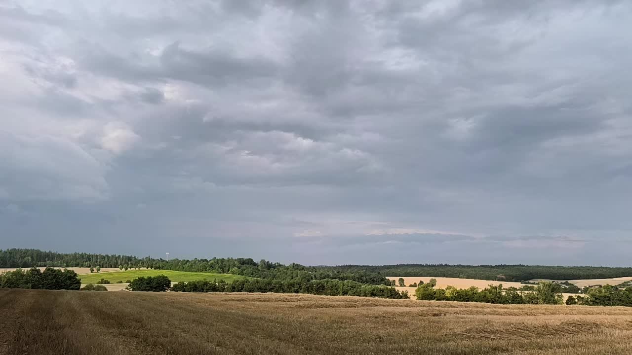 Polojasno, západně od nás je celkem silná přeháňka, ale bez výbojů.