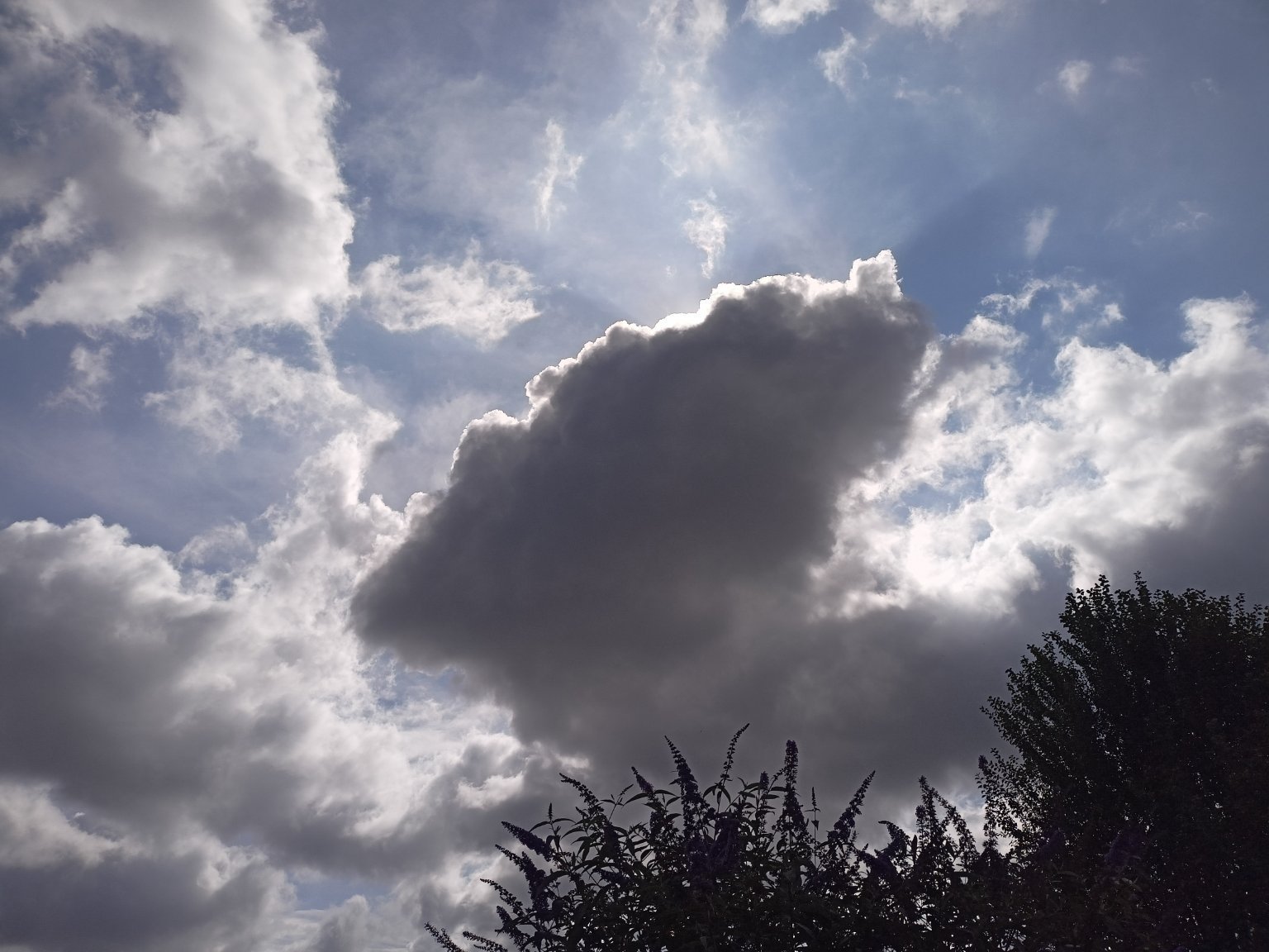 Skoro zataženo, slabý Z vítr, slabá přeháňka
