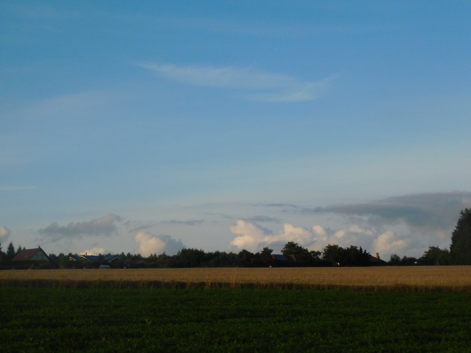 Kupovité oblačnosti ubývá a vítr se uklidňuje, ráno bych se nedivil teplotě kolem 8°C... přechodně ještě převážně oblačno, na obzoru horkovzdušný balón. Dny se zkracují