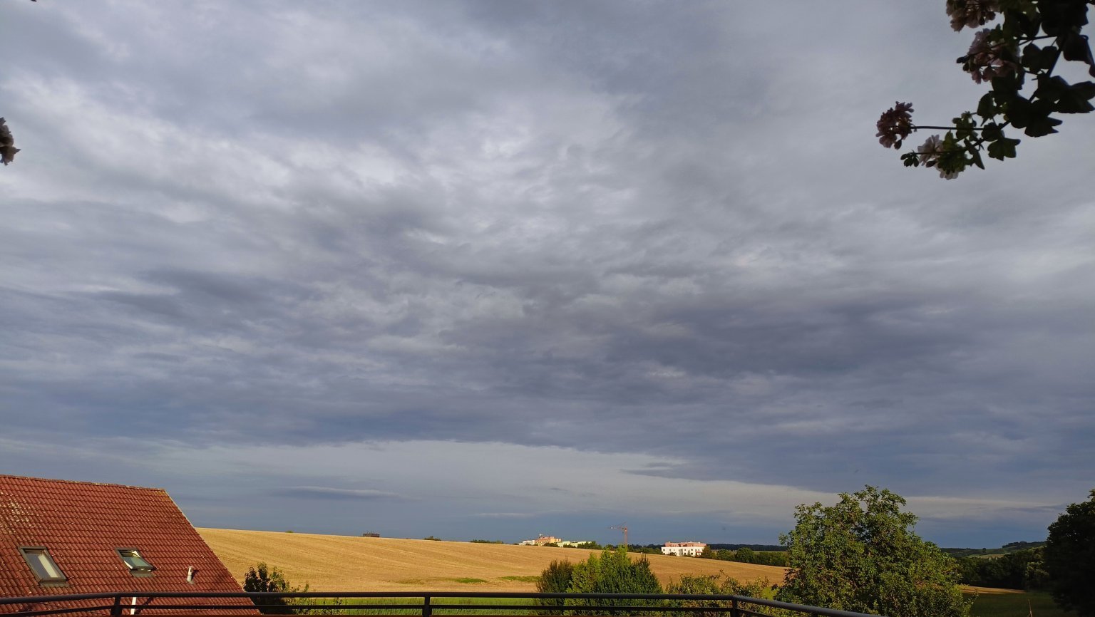 Polojasno až oblačno, severně od nás šla přeháňka. Ochladilo se.