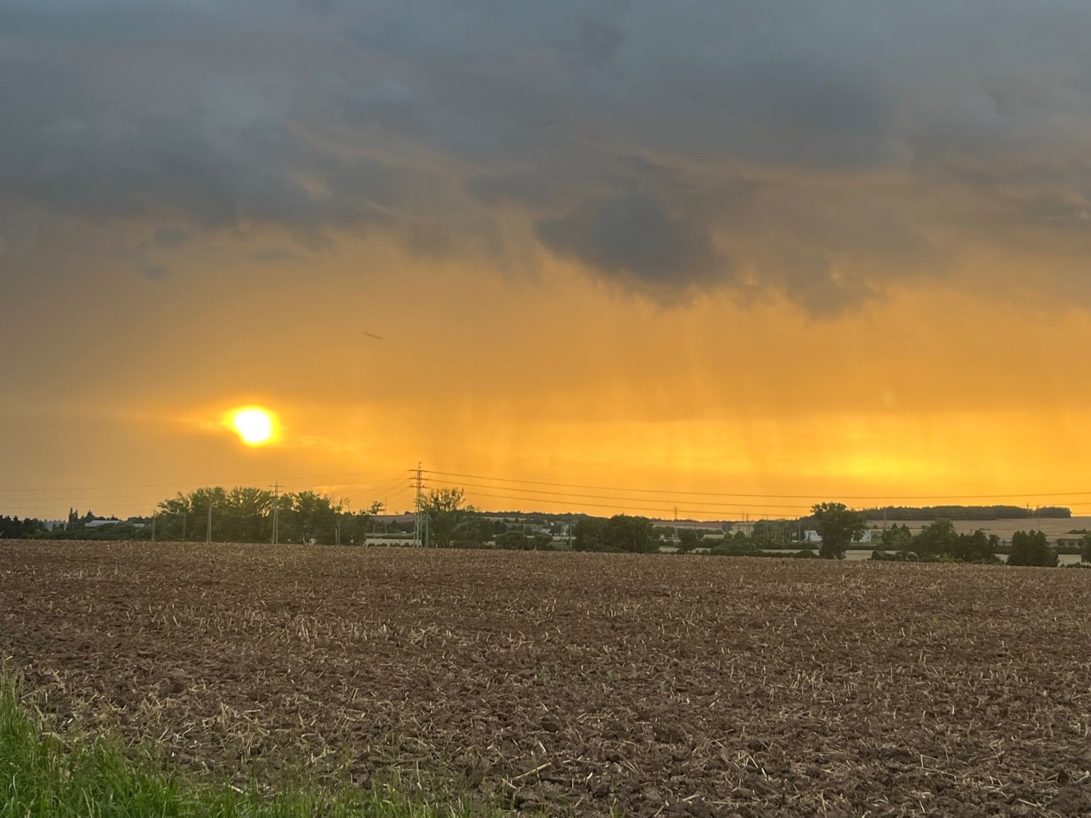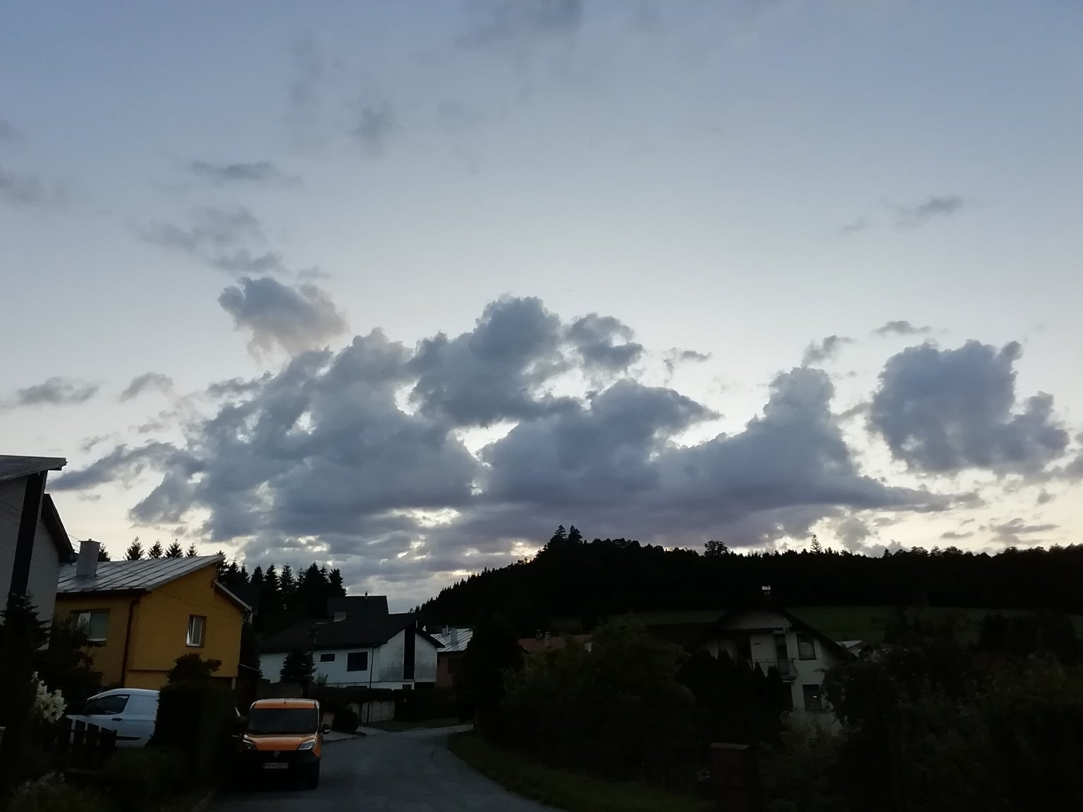 Zataženo, lehce začíná pršet, čelo přeháňky se blíží. Rozfoukal se čerstvý nárazový vítr.