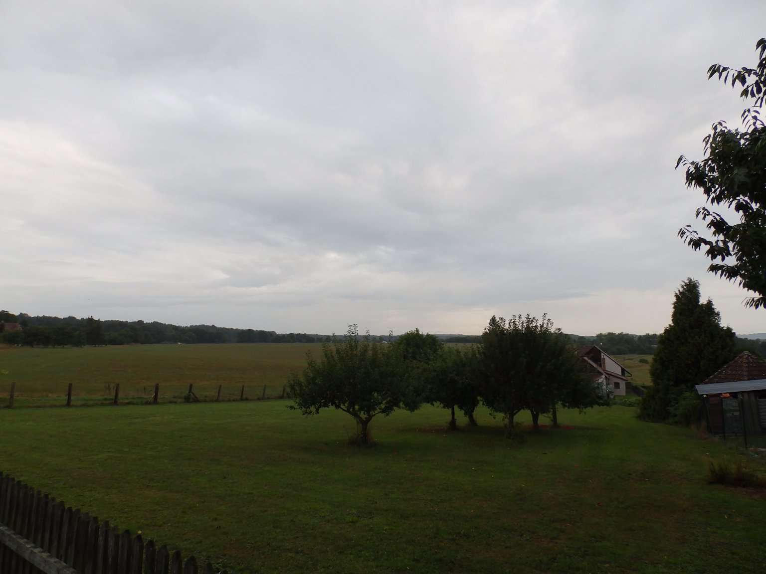 První srpnové srážky na sebe opravdu nenechaly dlouho čekat. Za skoro zatažené oblohy a bezvětří se spustil i vydatný déšť, napršelo zatím 1,2 mm. Min. 10,4°C