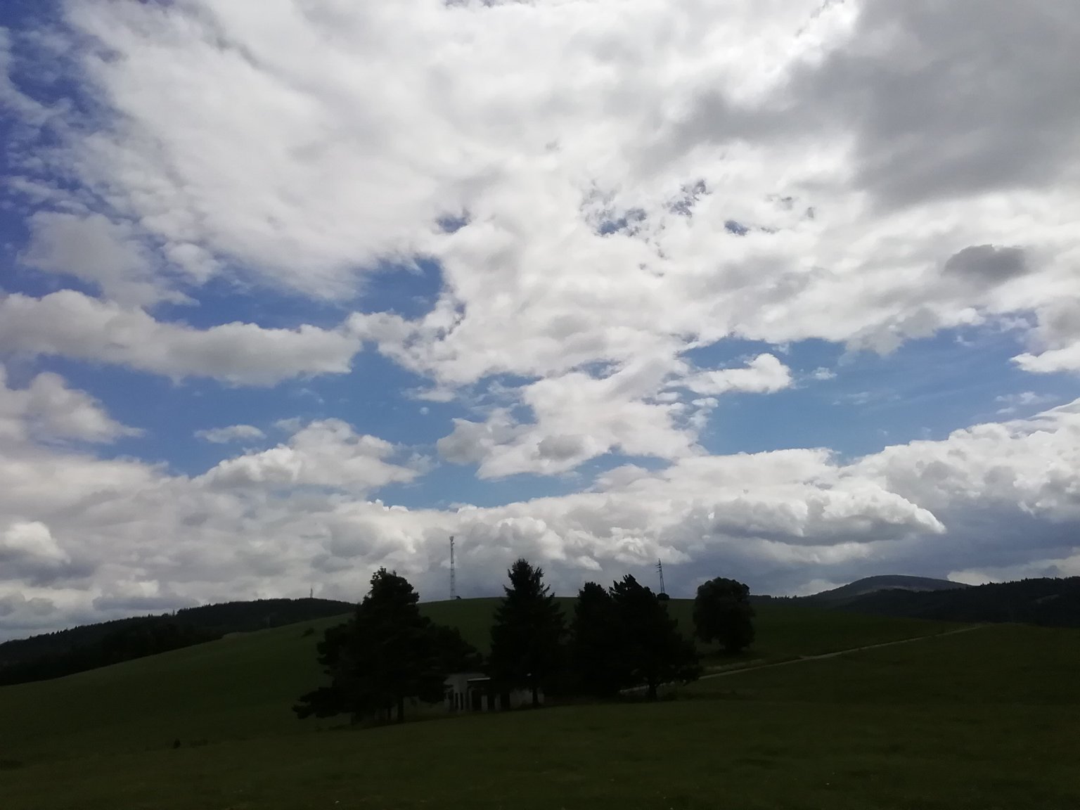 Tvoří se přeháňky a od západu jde i konvektivní buňka. Slabý až mírný vítr