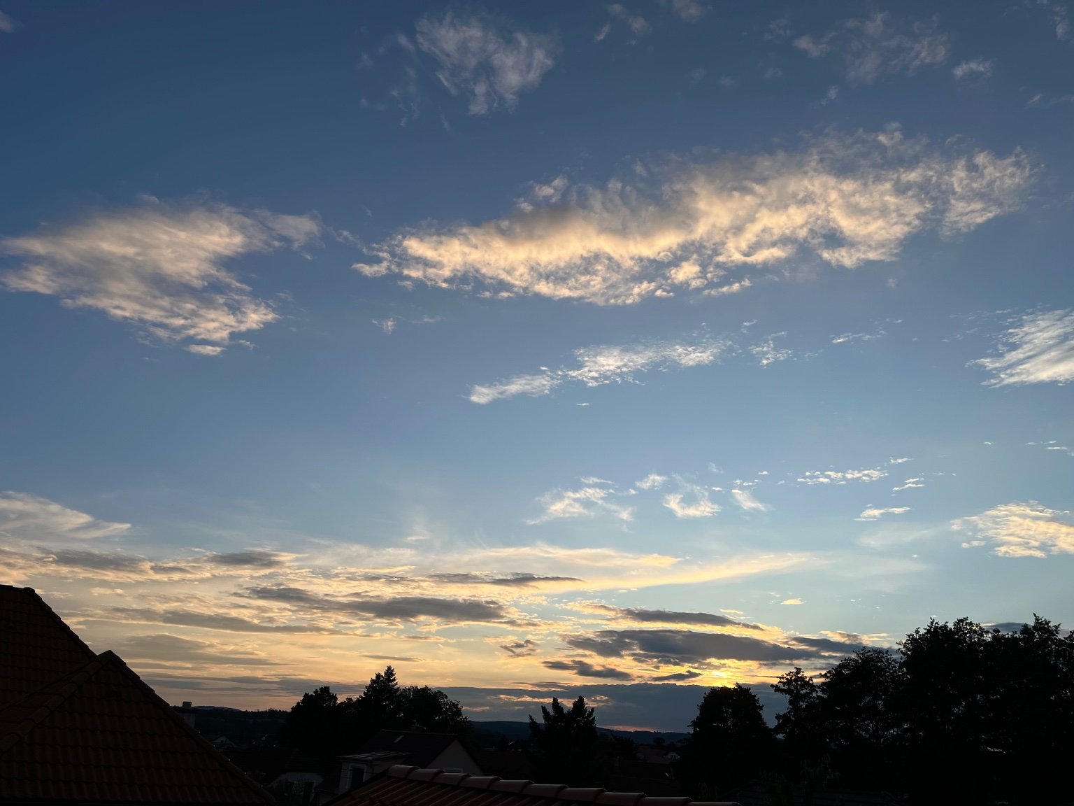 Slabý déšť, začalo pršet. Jde na nás přeháňka. Fouká většinou mírný vítr.