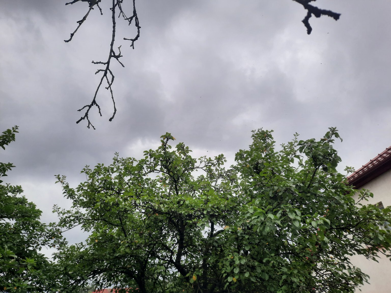 Skoro jasno a v zadu se tvoří přeháňka. Vánek
