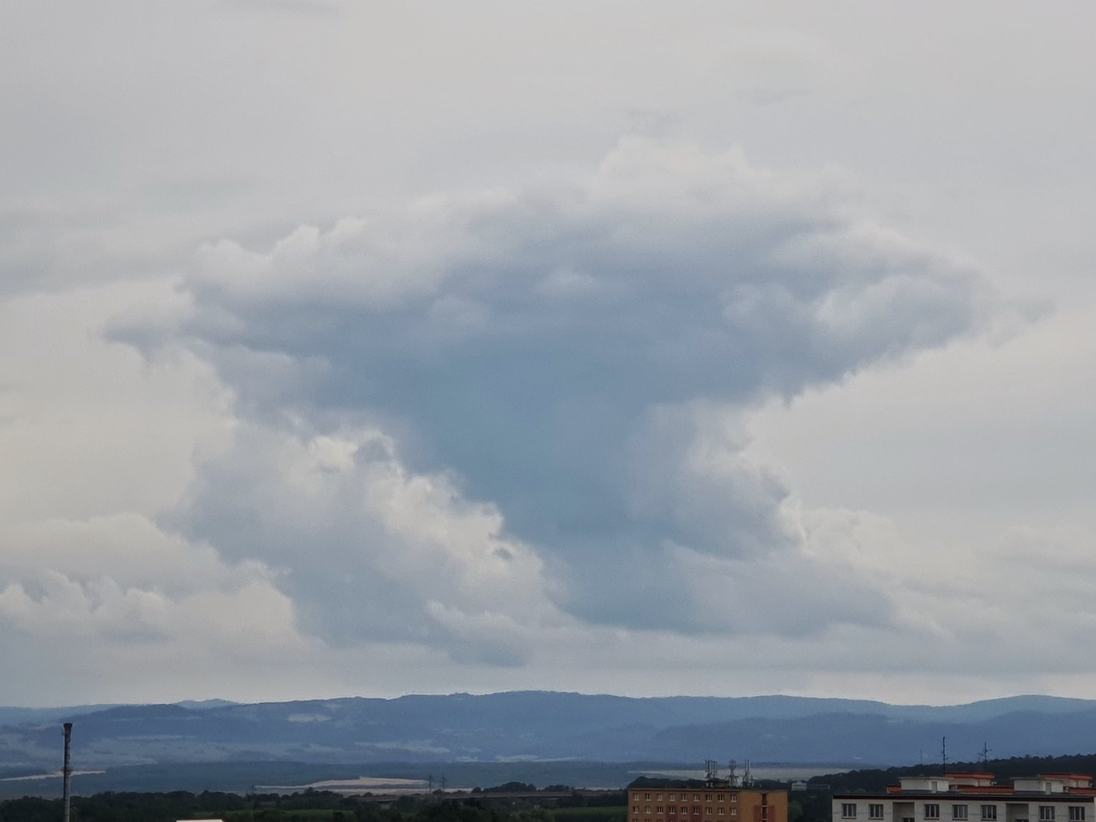 -°C, Vzdálená bouřka. Zrovna jsem se podíval na nezajímavou přehaňku a vyletěl z ní krásný rozvětveny CC blesk, podle radaru tam jsou i kroupy.