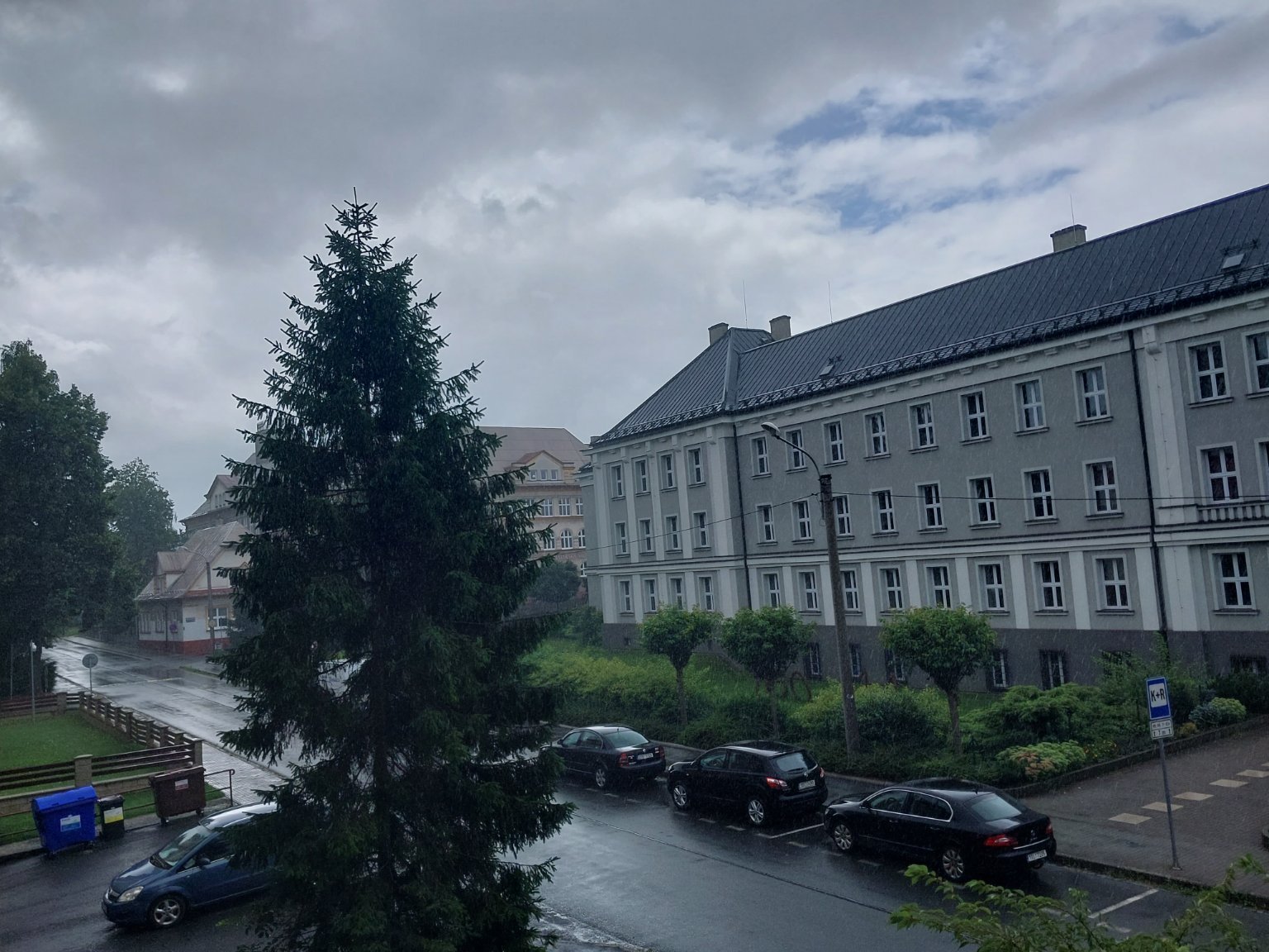 Po celonočních srážkách a zataženu, konečně oblačno, mírný Z. vítr, tlak 1016 hPa, vlhkost cca 80%.