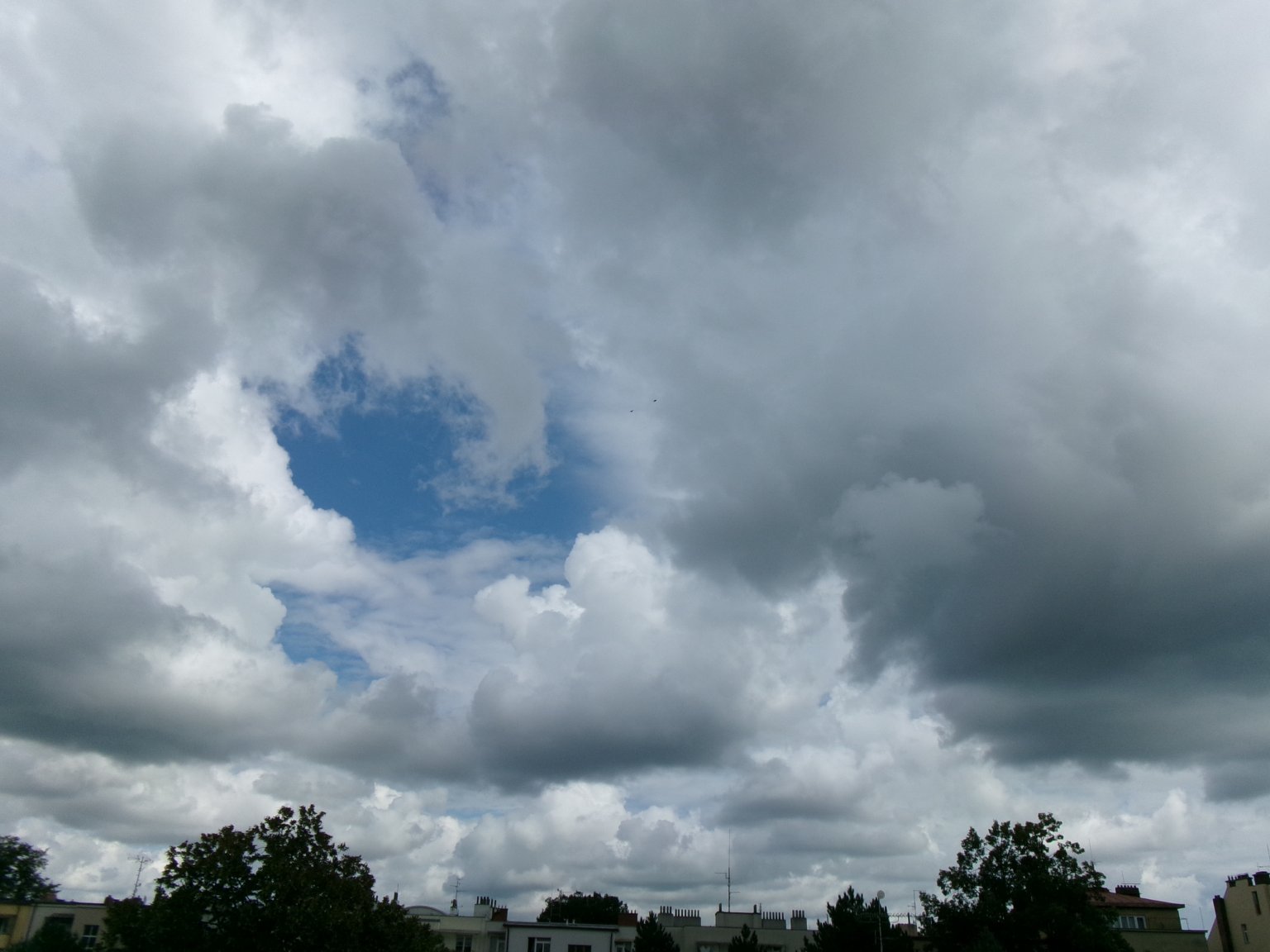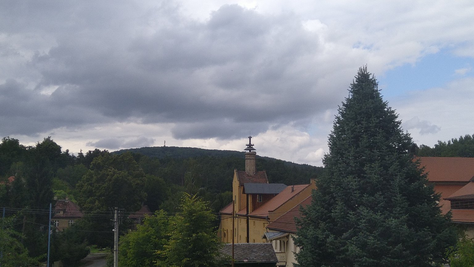 Skoro zataženo, ve studeném větru prolétávají kapky, chladno.