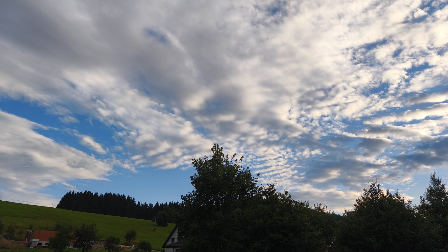 Oblačno až zataženo, zatáhlo se. Pořád je teplo, ale jak nesvítí slunce, tak je celkem dobře.