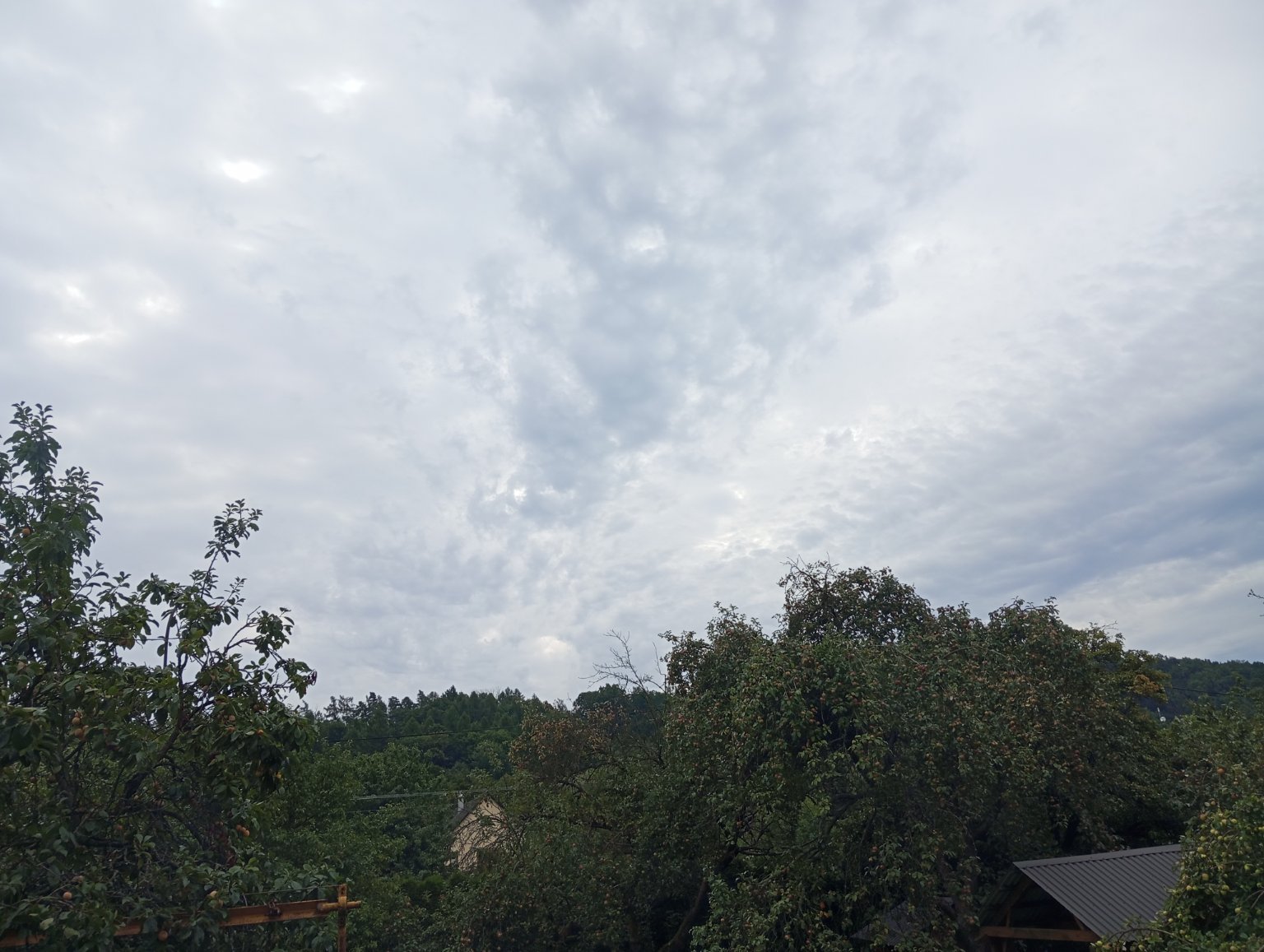 Zataženo vysokou oblačnosti, už se pomalu protrhává oblačnost. Bezvětří nebo mírný vánek (jedu do Prahy na 2 noci)
