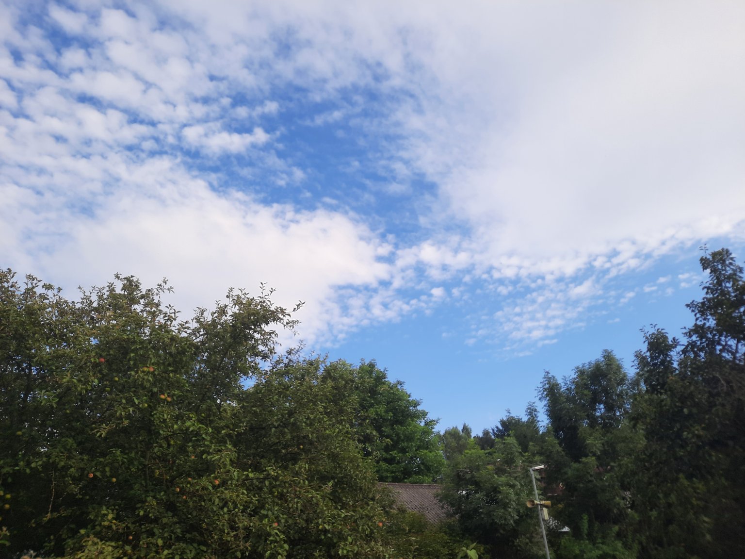 Vysoká oblačnost většinou s altocummuly, místy ještě suchý vzduch a dusno. Mírný vánek