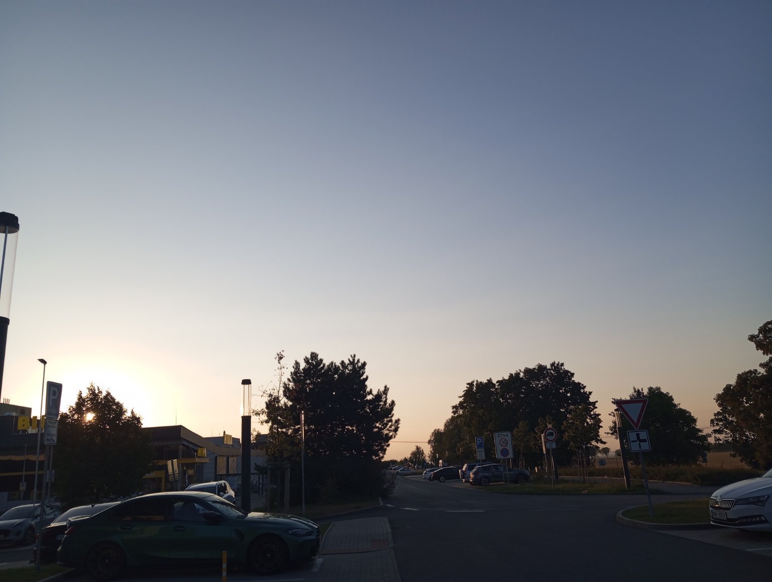 Polojasno až oblačno, červánky při západu slunce.