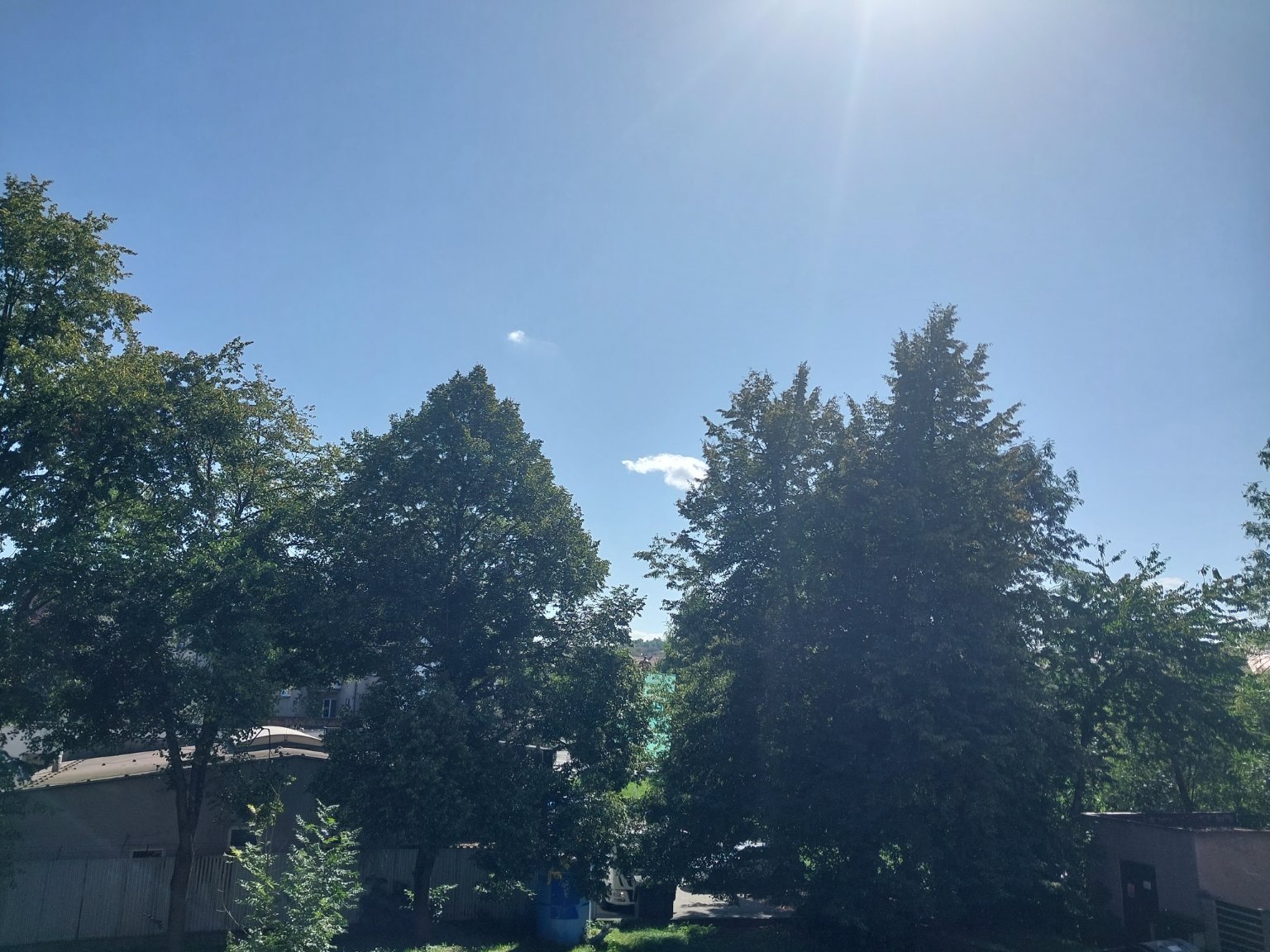 Jasno. Slabý vítr (jedu na výlet do Karlštejnu)