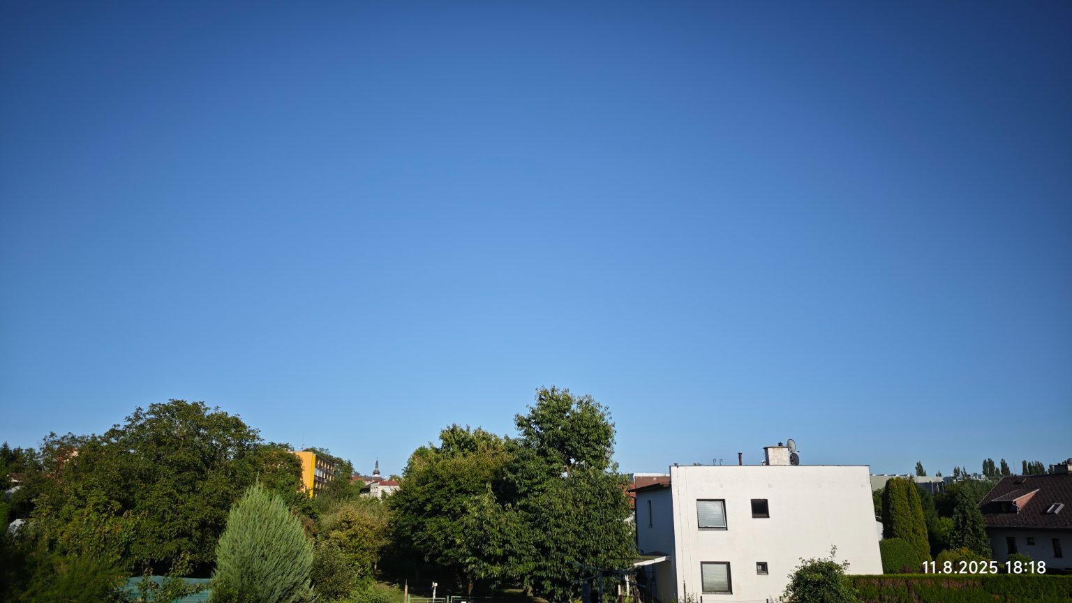 Nádherně jasný den. Vane mírný severovýchodní vítr, tlak: 1021hPa. Ráno teplota klesla na 12,4°C, odpoledne maximum lehce přesáhlo hranici letního dne.