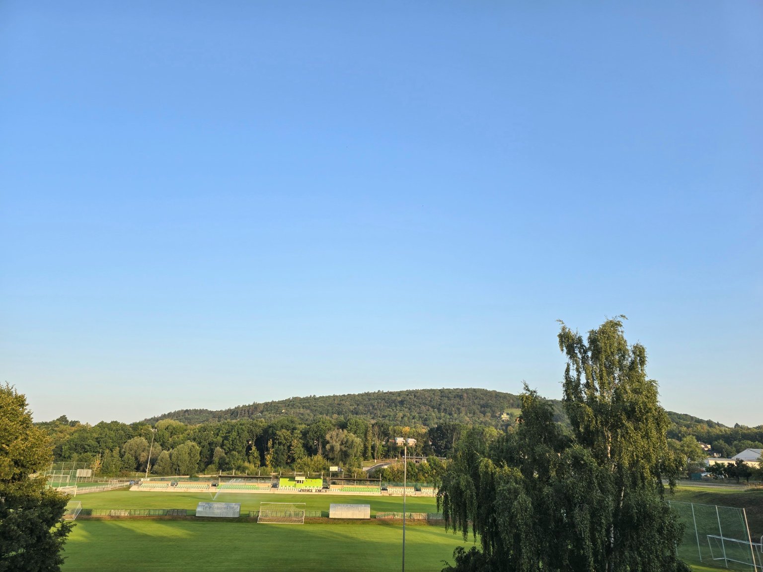 Jasno, dnešní ráno je teplejší. Je hezky.