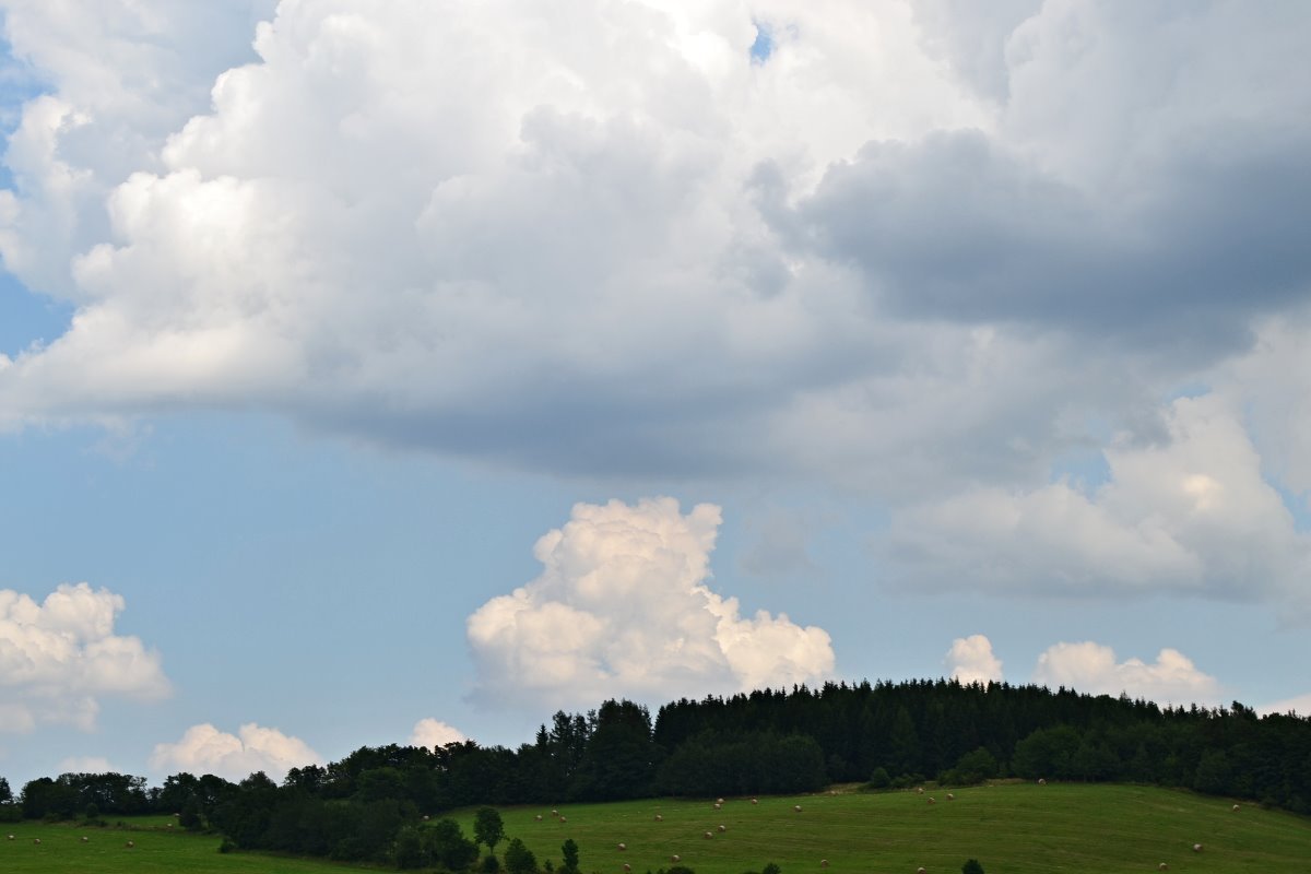 Předpověď se naplnila. Nárůst kupovité oblačnosti je tady.Tlak 1024 hPa, vítr SV, 0,6 m/s.