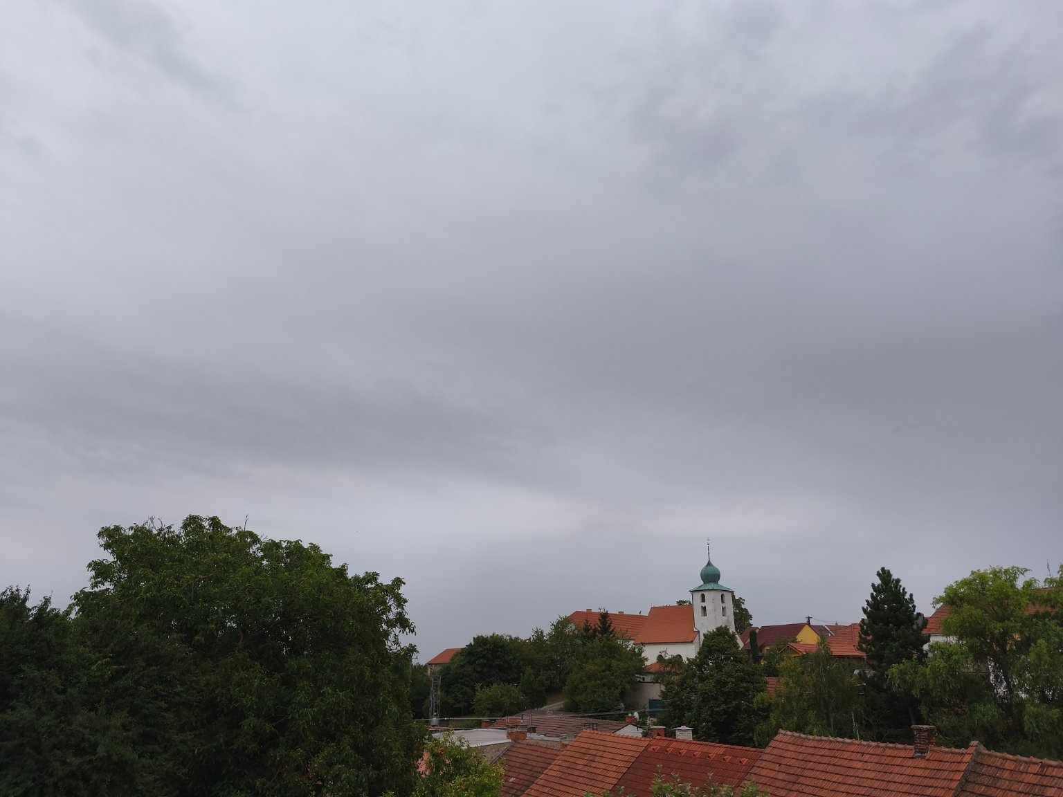 Oblačno převážně vysokou oblačností, slabý SV. vítr, tlak 1007,1 hPa, vlhkost 54%.