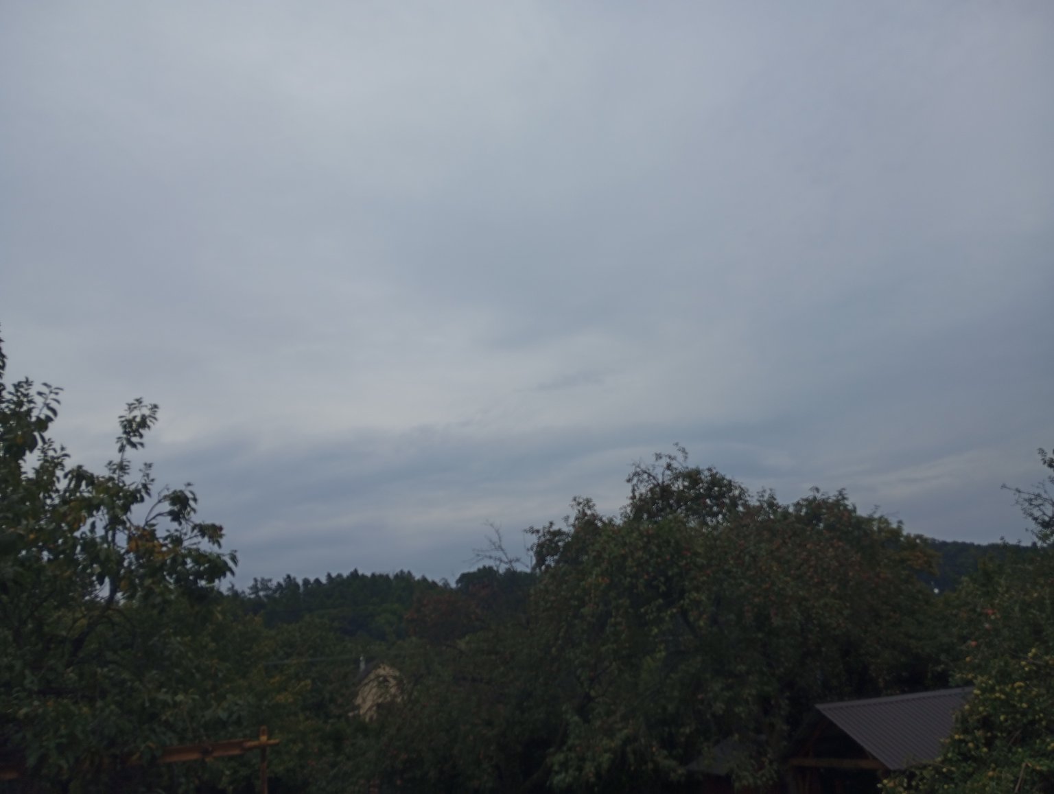 Aktuálně převažuje většinou zataženo, slabý déšť začalo trochu pršet, fouká většinou vánek