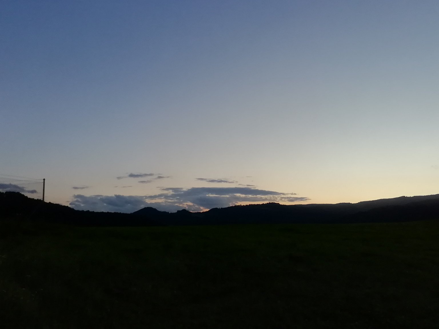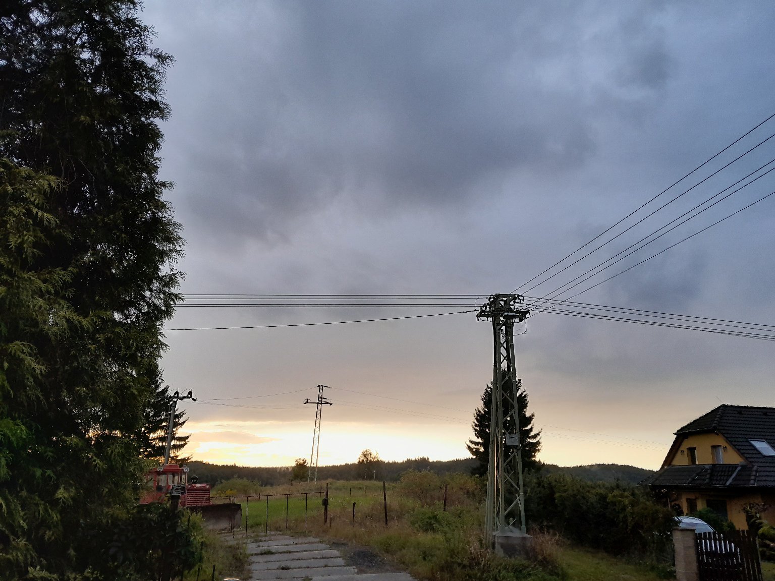 17°C, Zataženo až oblačno. Jelikož jsme se stavili na večeři, tak nás přehaňky „konečně“ dohnaly... Celkem větrno je a fajně to voní po dešti.