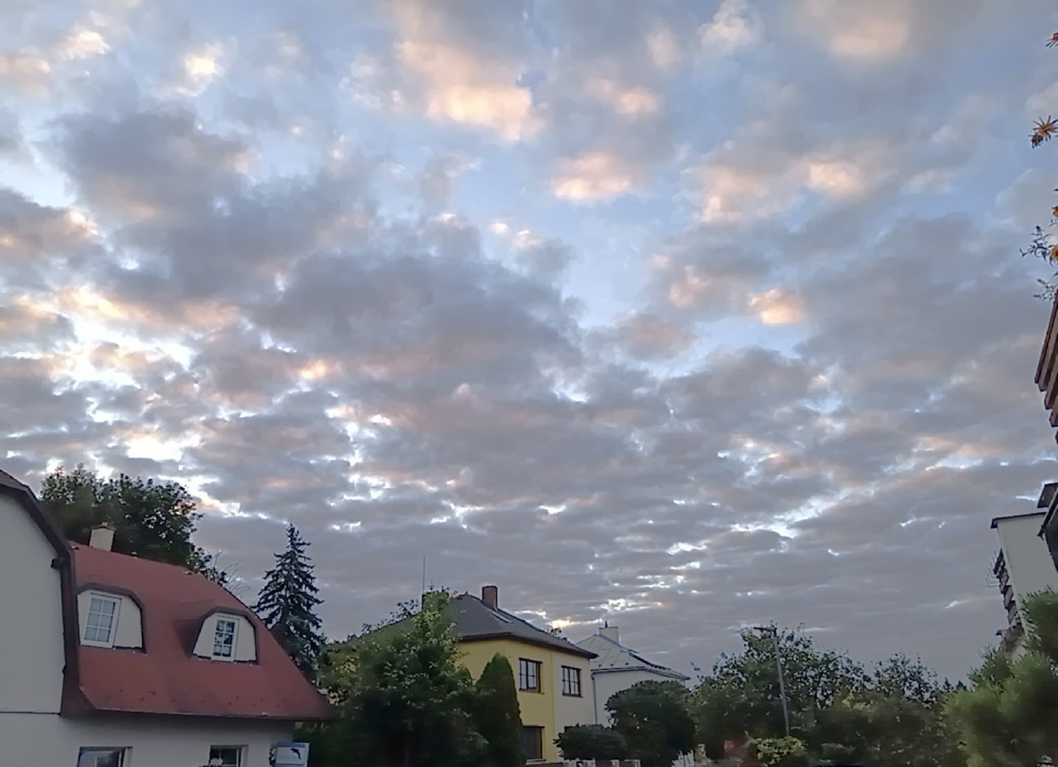 Skoro jasno, klidno, tlak 1020 hPa.
