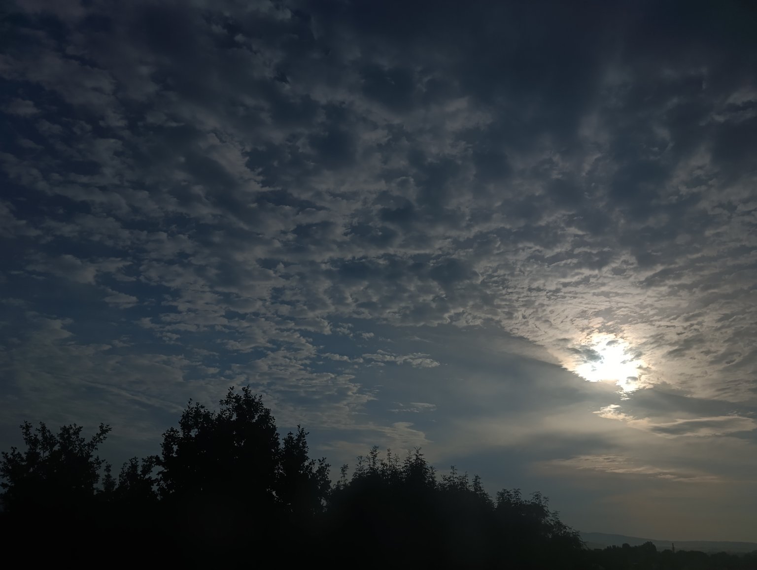 Oblačno až skoro zataženo. Většinou bezvětří. Min T dnes 12,9°C