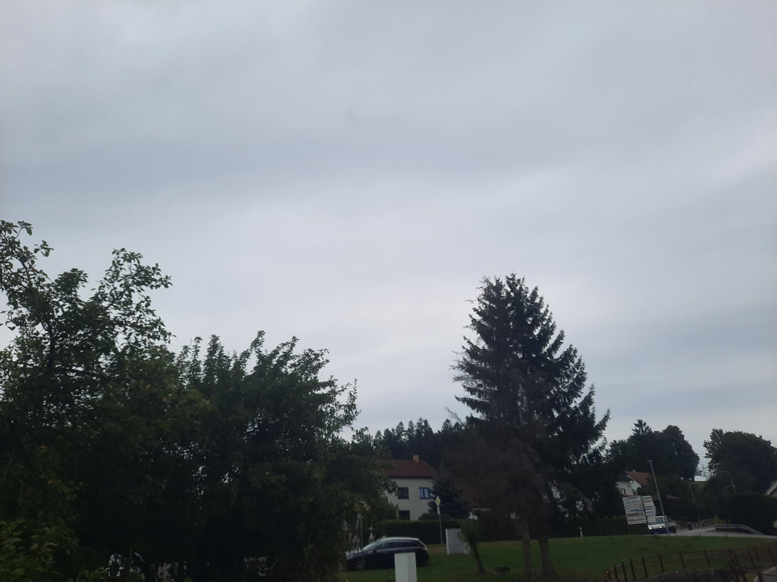 Během rána napršelo jen 0,4 mm a oblačnosti již přechodně ubývá. Převažuje vysoká, Z ale vzniká i kupovitá. Většinou bezvětří nebo vánek, převážně slunečno